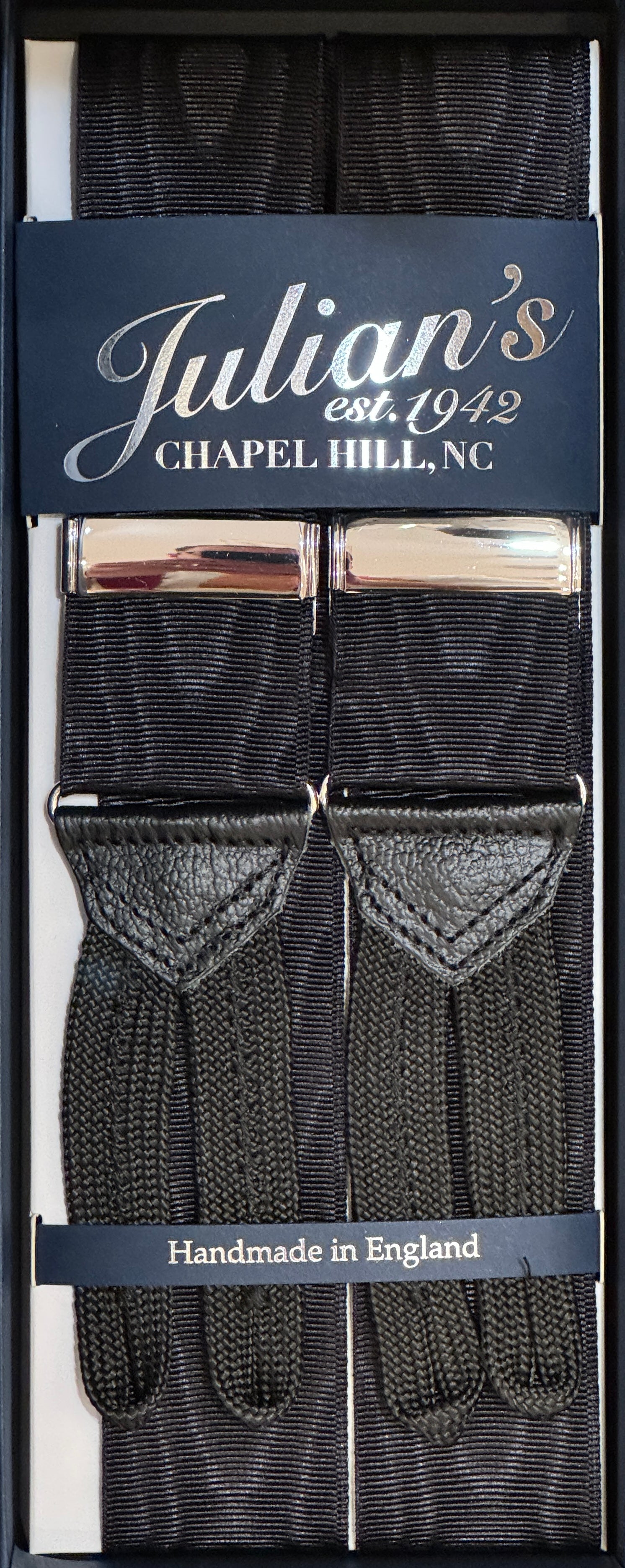 Manufactured since 1820, Albert Thurston braces are the benchmark of superior quality in gentlemen's suiting accessories. Having been popularised by Daniel Craig, in the James Bond films, braces have seen a big comeback. This particular style is suitable for all occasions where a little pop of individuality or sheer function require the absolute best.
