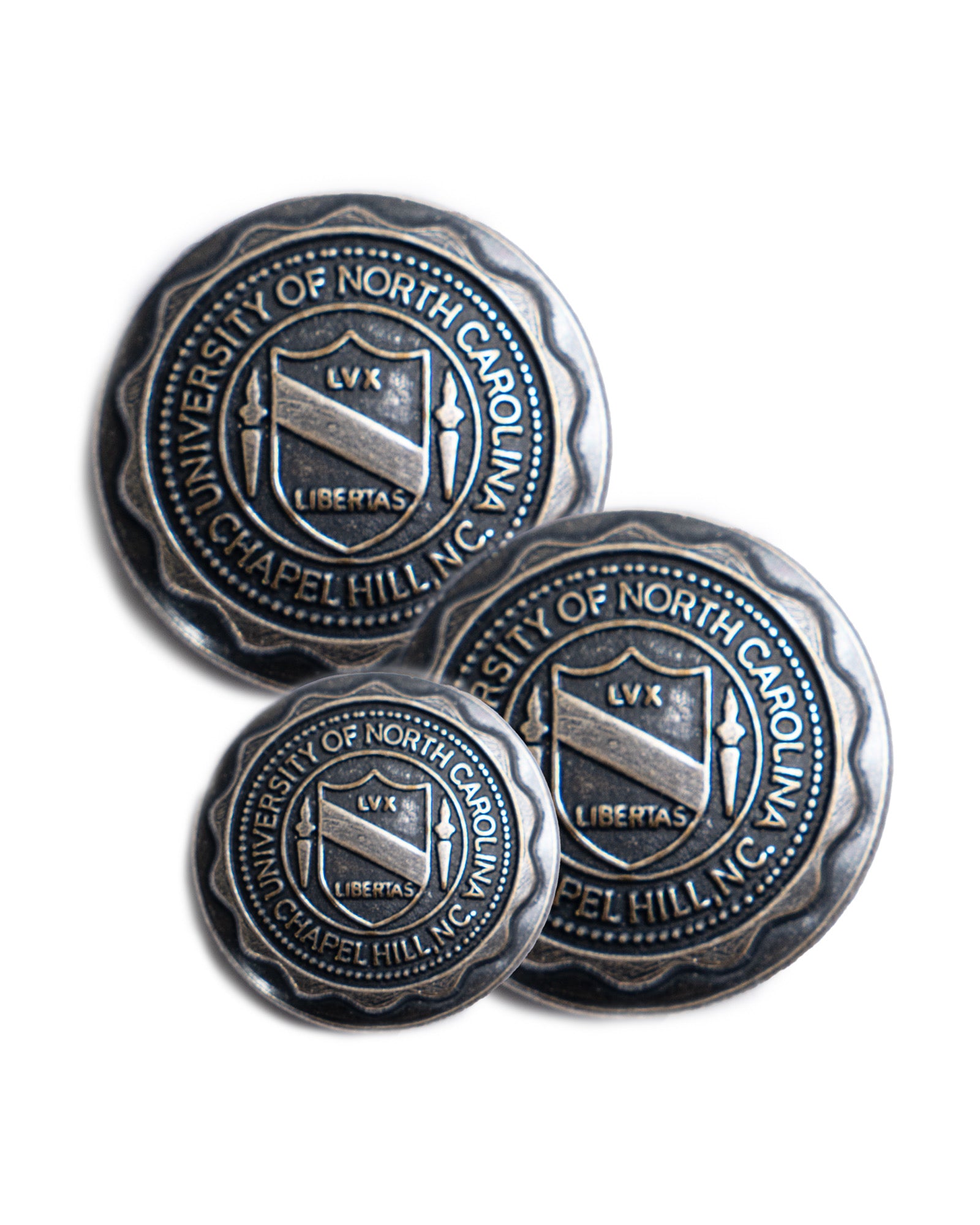 UNC Seal Antiqued Silver Plate Blazer Button Set
