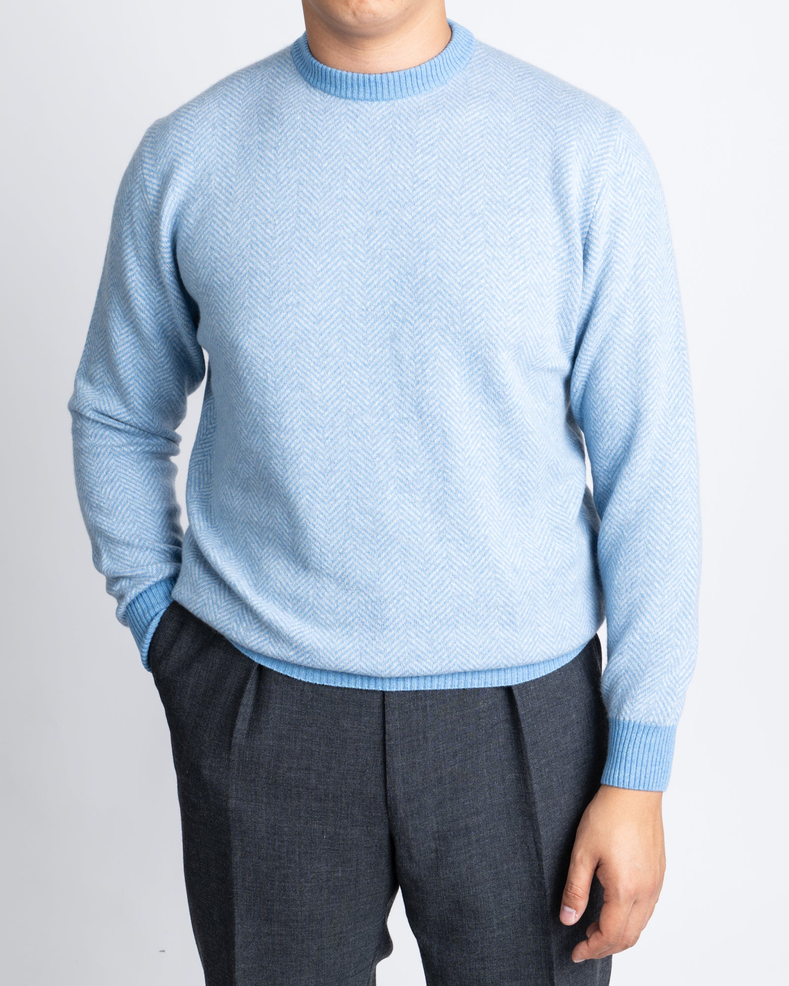 Ultimate Lt.Blue Cashmere Herringbone Sweater