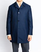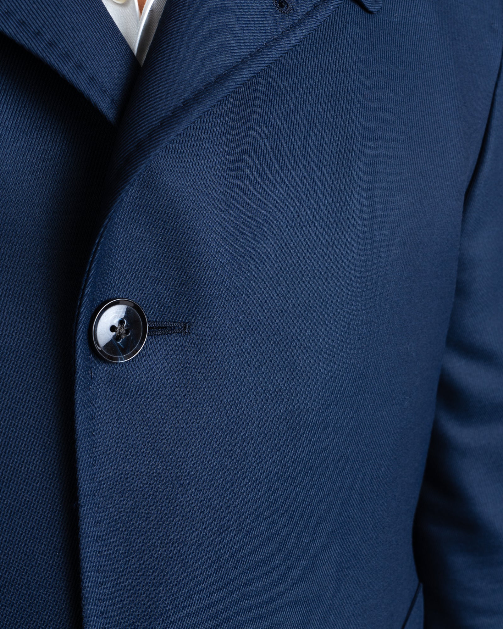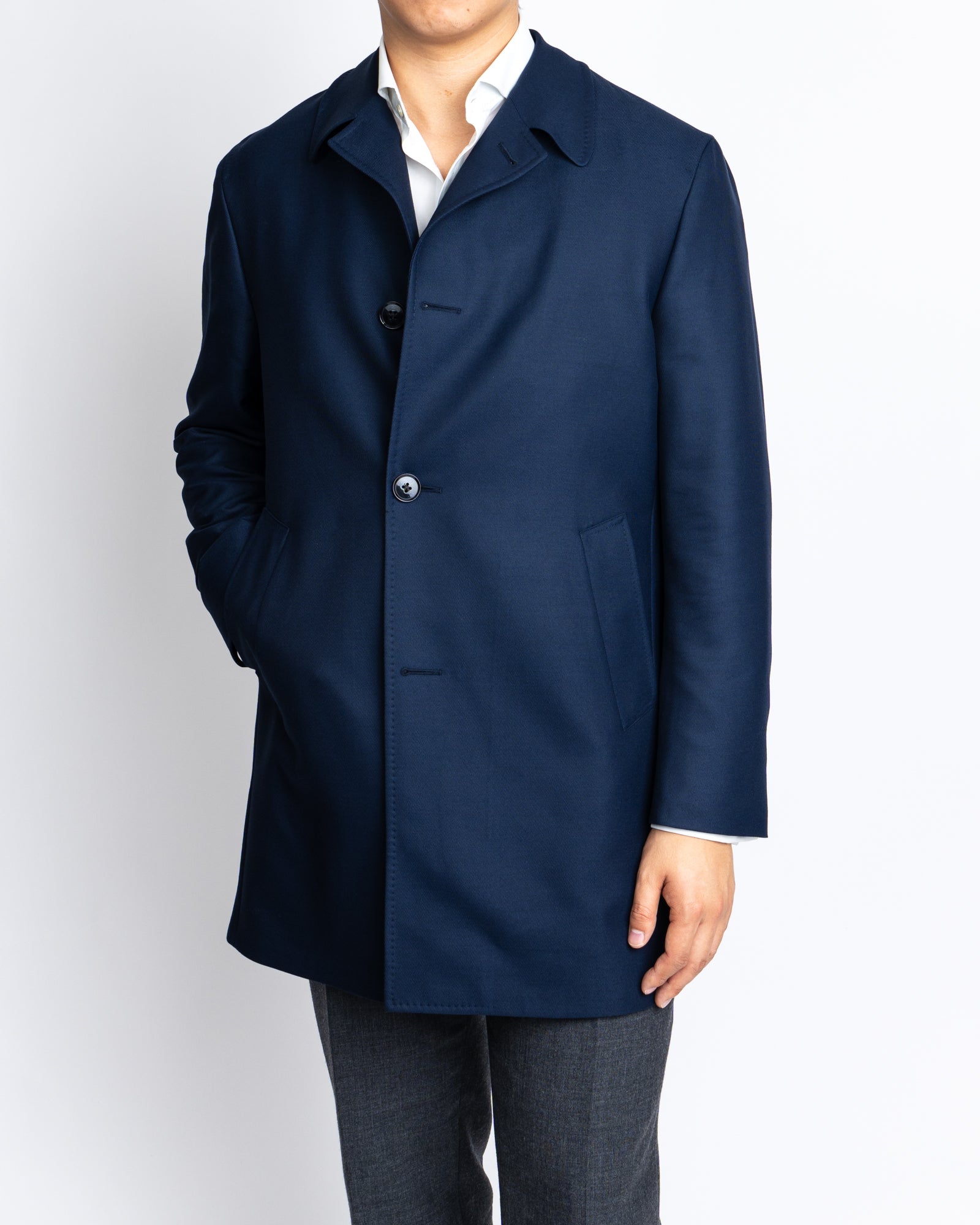 Navy Twill Loro Piana Storm System Single Breasted Navy Raincoat