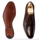 Courtenay, an oxford shoe with a subtle punched design made from the finest dark brown antique calf leather and bark tanned single leather soles. From the Hand Grade Collection.