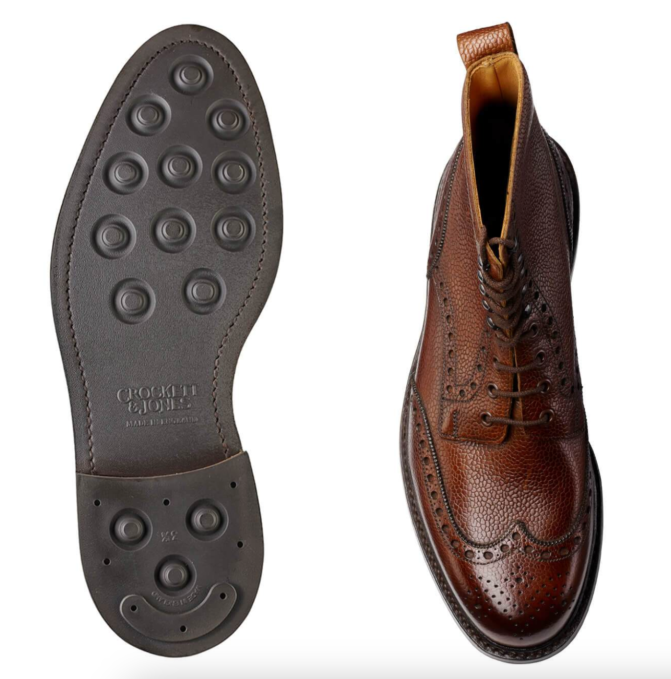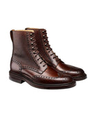 Islay, a full brogue derby boot with wing tip design and bold punching detail. Made from the finest dark brown scotch grain calf with Dainite rubber soles and storm welts for added water resistance. From the Men's Main Collection. As worn by Daniel Craig as James Bond in 'Skyfall'