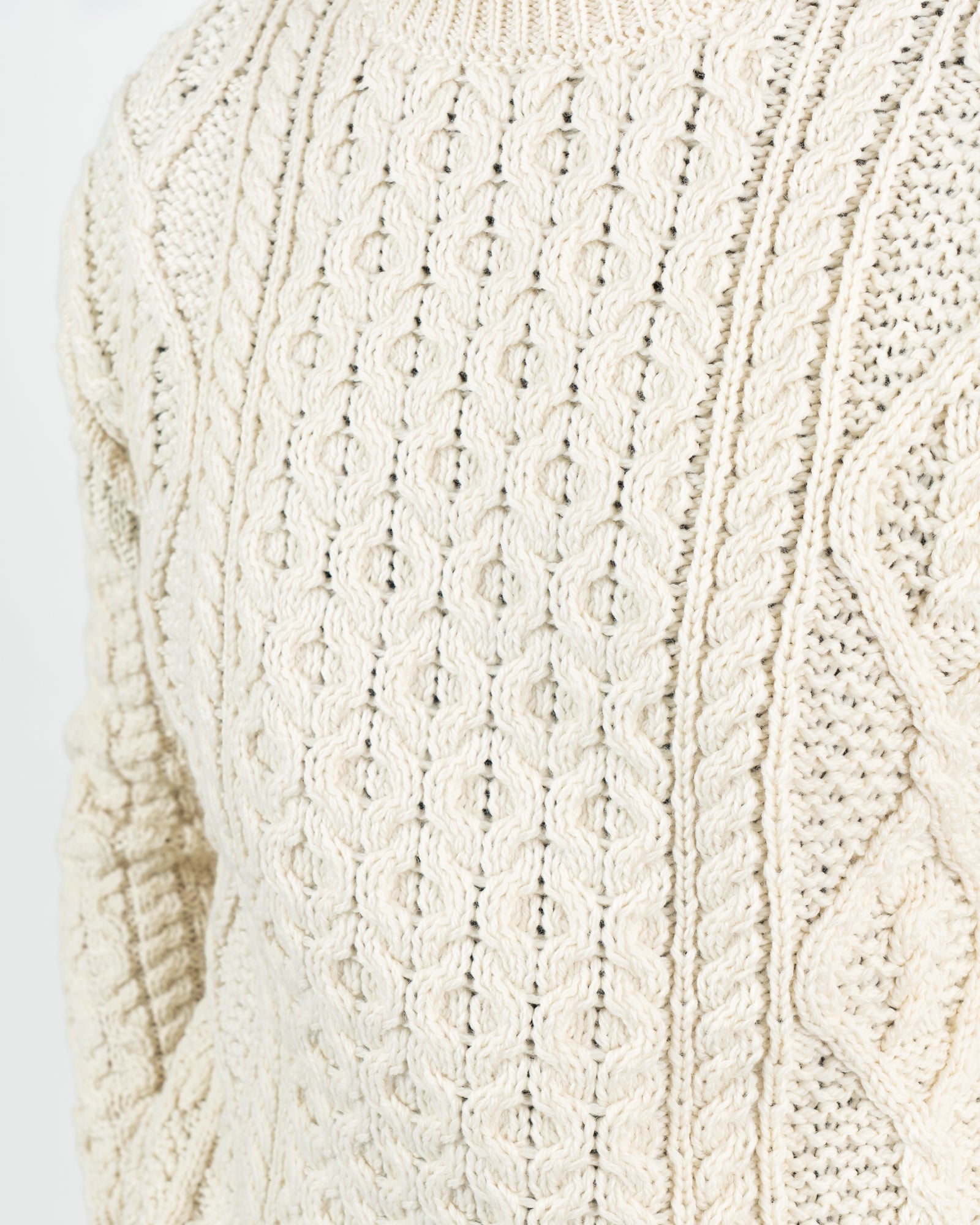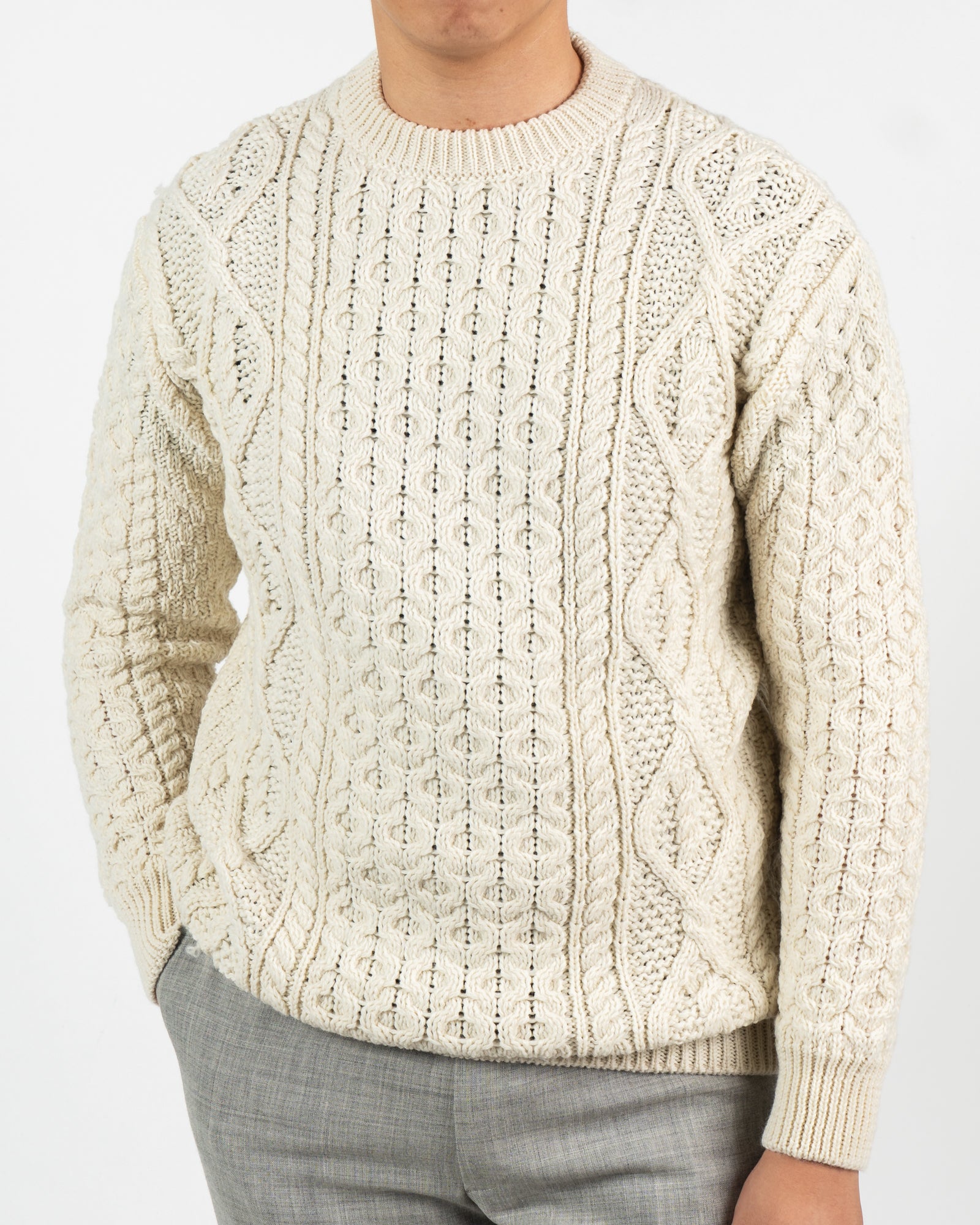 This, the most famous style in Aran Knitting can be worn by both men and women. It incorporates a variety of Irish Aran Stitches that were believed to bring luck, success, and health to the wearer. Honeycomb indicating the hard working honey bee, and Aran basket stitch to bring the omen of good luck, and the diamond to bring wealth. Warmth is the key to this style and made with 100% wool it is sure not to let you down.