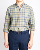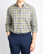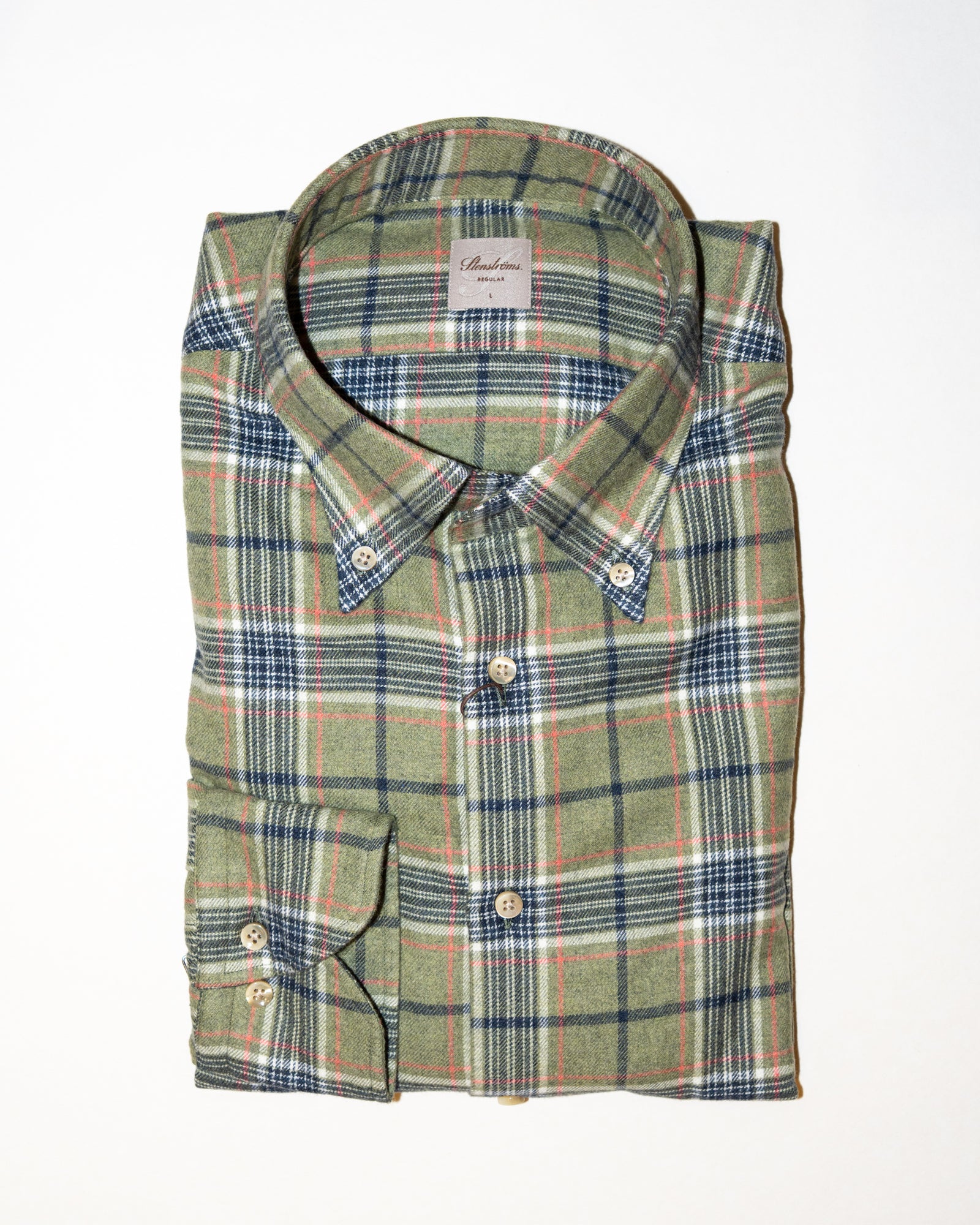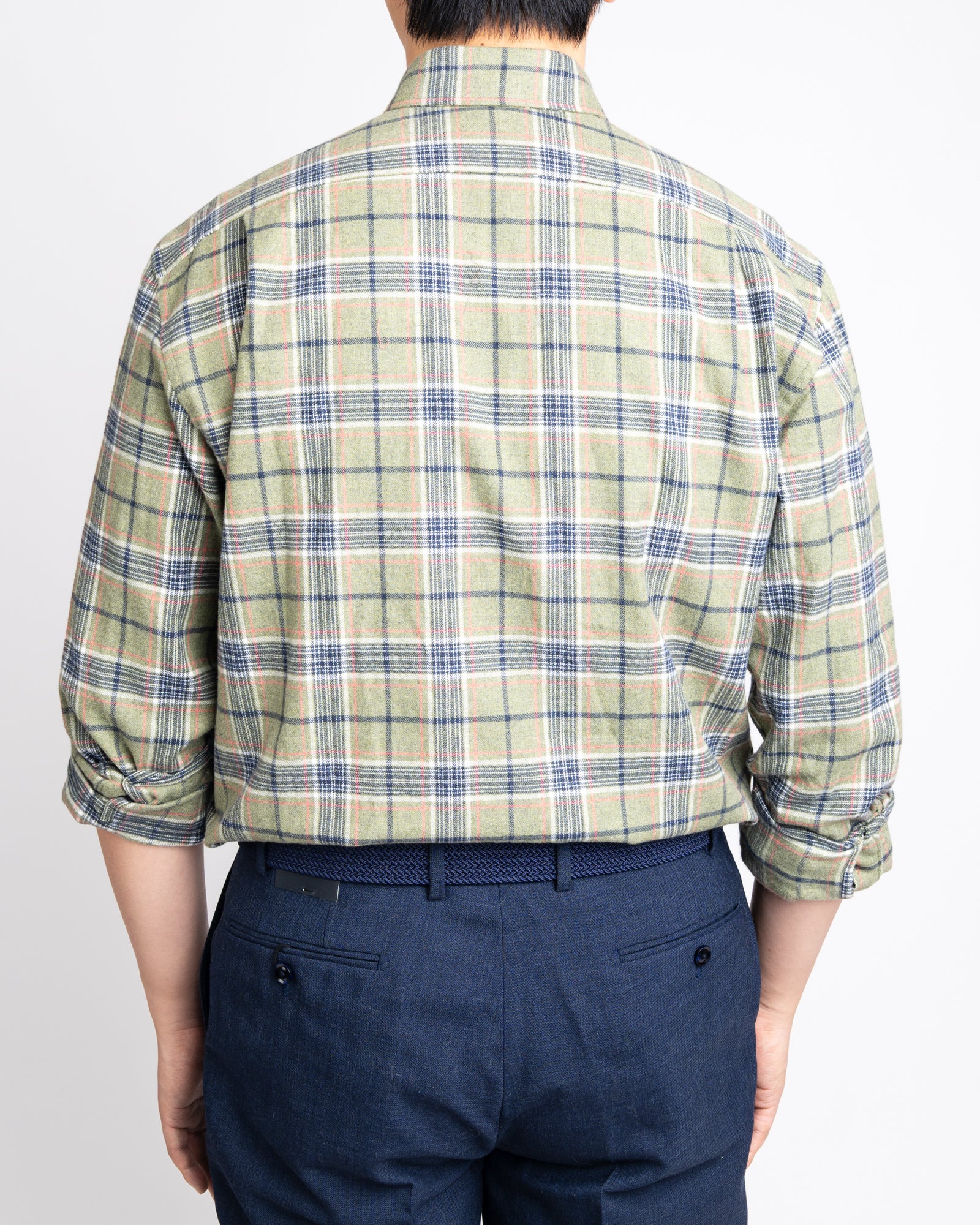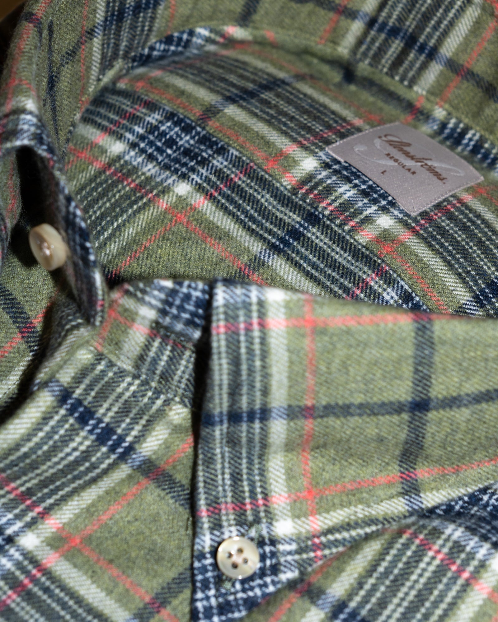 This brushed flannel shirt is made of twofold cotton and is detailed with mother of pearl buttons, single cuffs and a Cutaway soft collar.