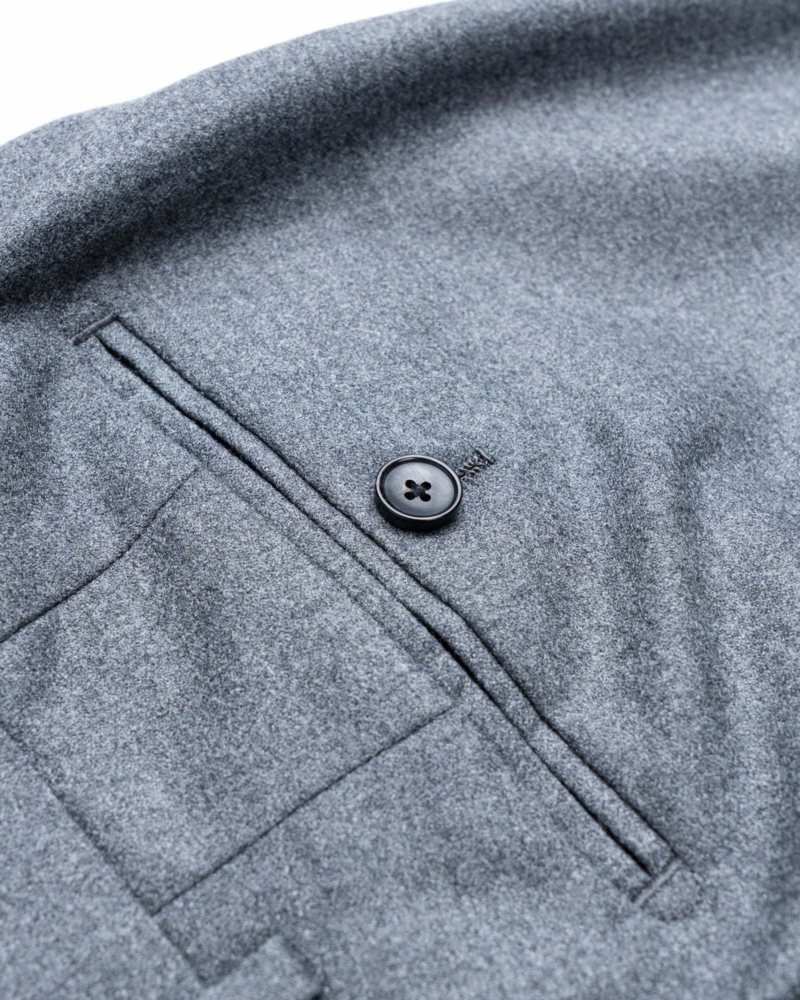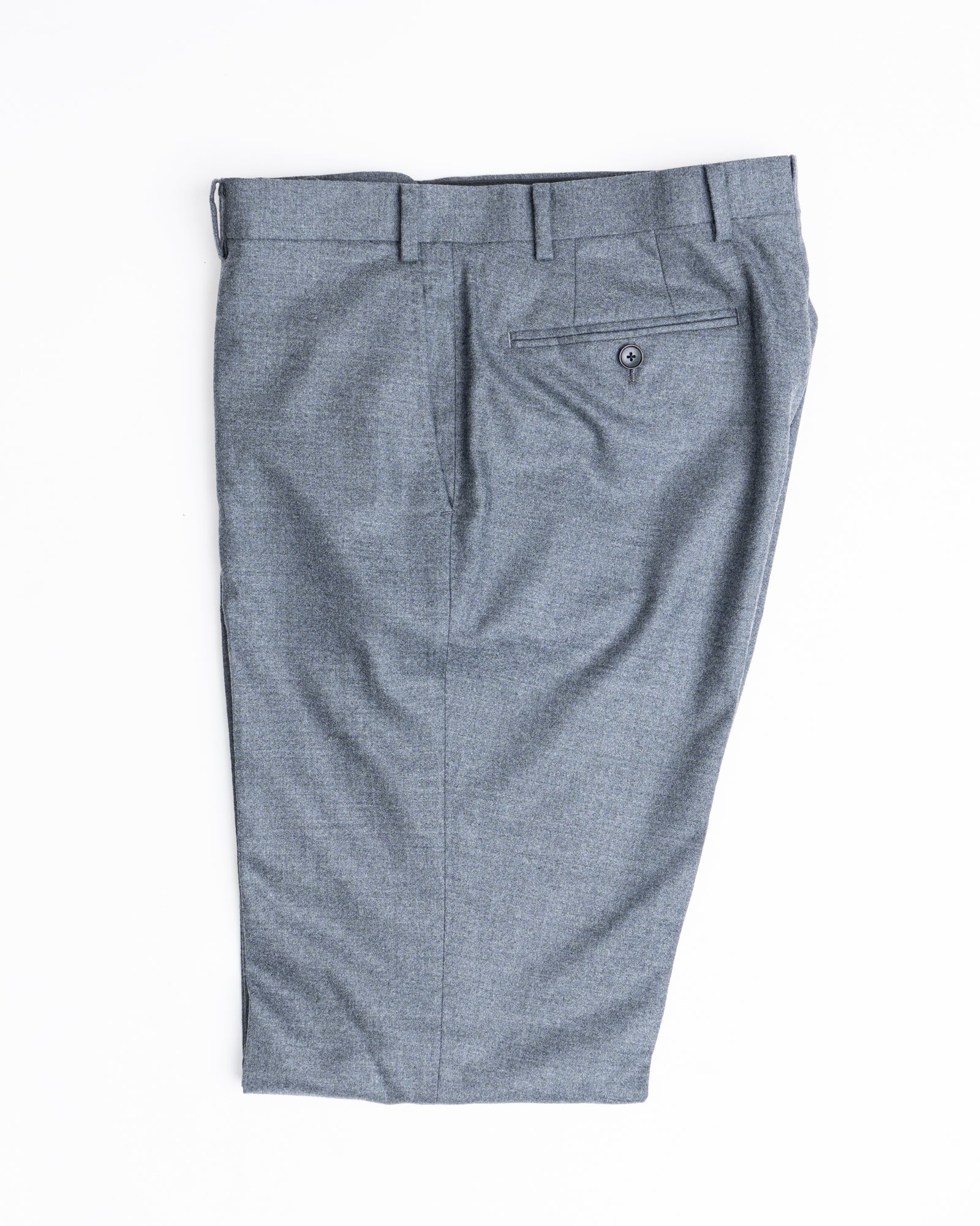 Reliable medium grey flannel trousers are an excellent addition to any wardrobe. Ours has been made from Italian stretch-wool that's finely woven for a buttery handle. They fit comfortably through the leg and have creases through the front.