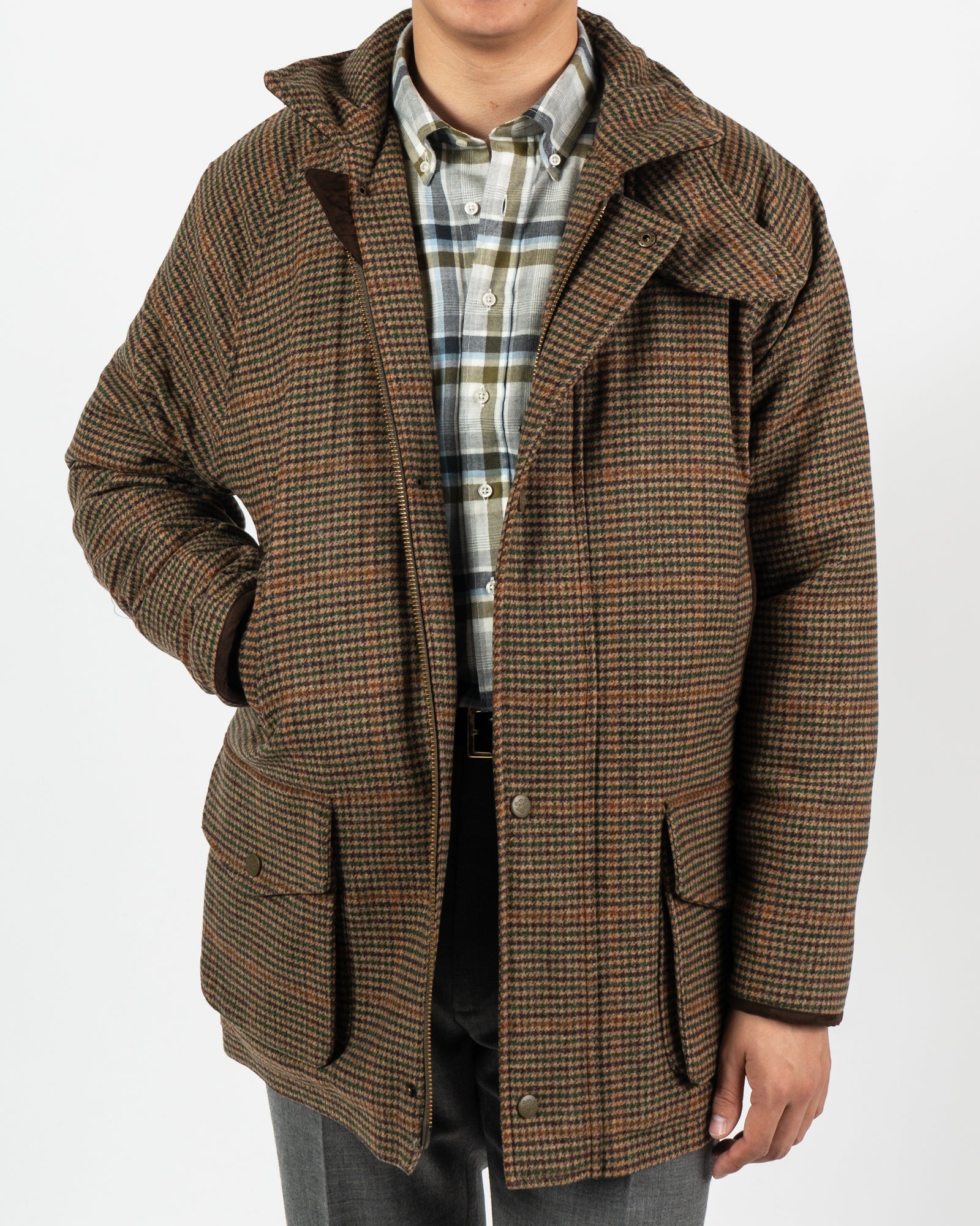 The Surrey waterproof coat is crafted in a specially selected, contemporary-colored medium weight pure wool tweed. It’s designed with a roomier shooting fit but retains a flattering shape. It has a sit-down collar, two side vents and a front raglan and back set-in sleeve to enable you to move freely, making the coat extremely comfortable to wear.