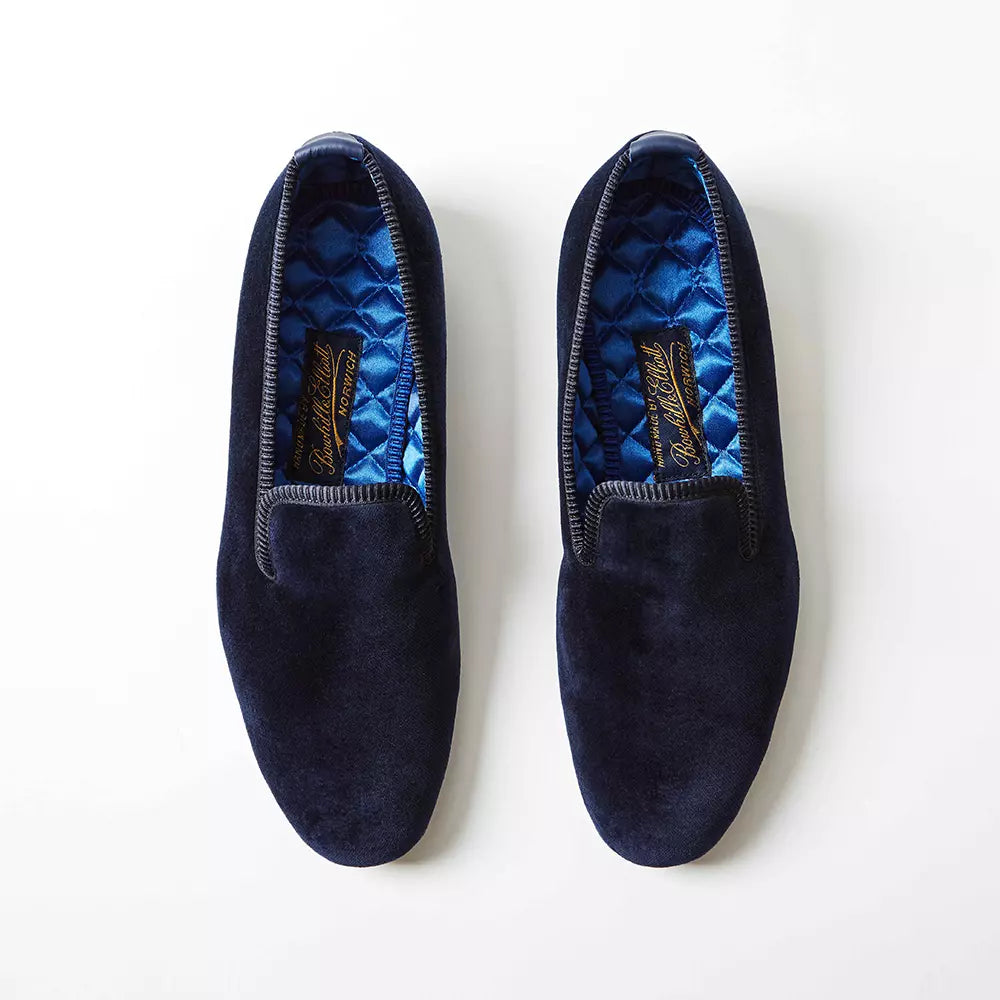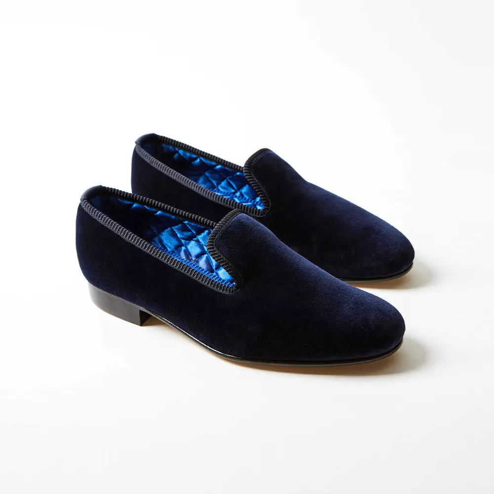 Bowhill & Elliot Navy Velvet Albert Slippers