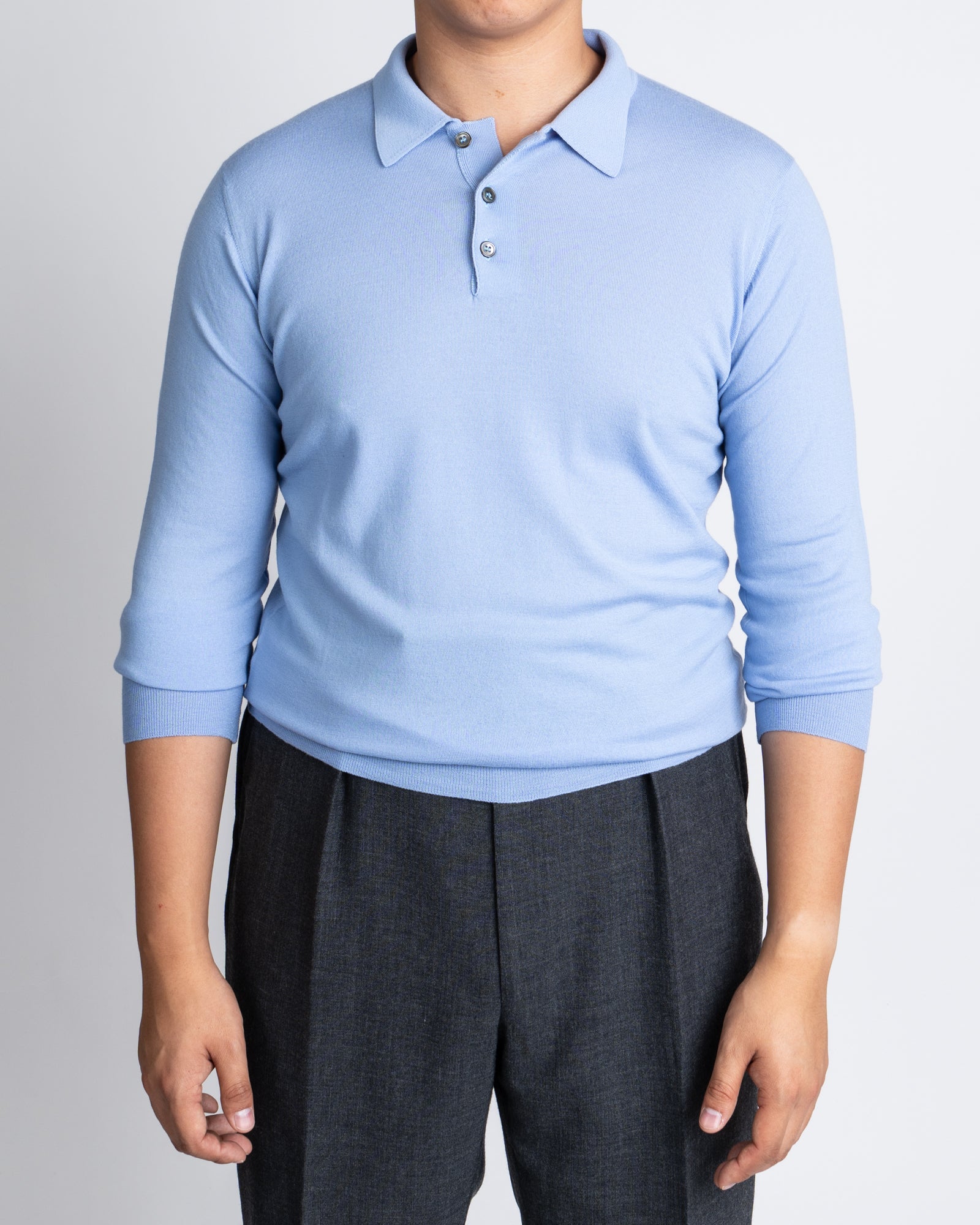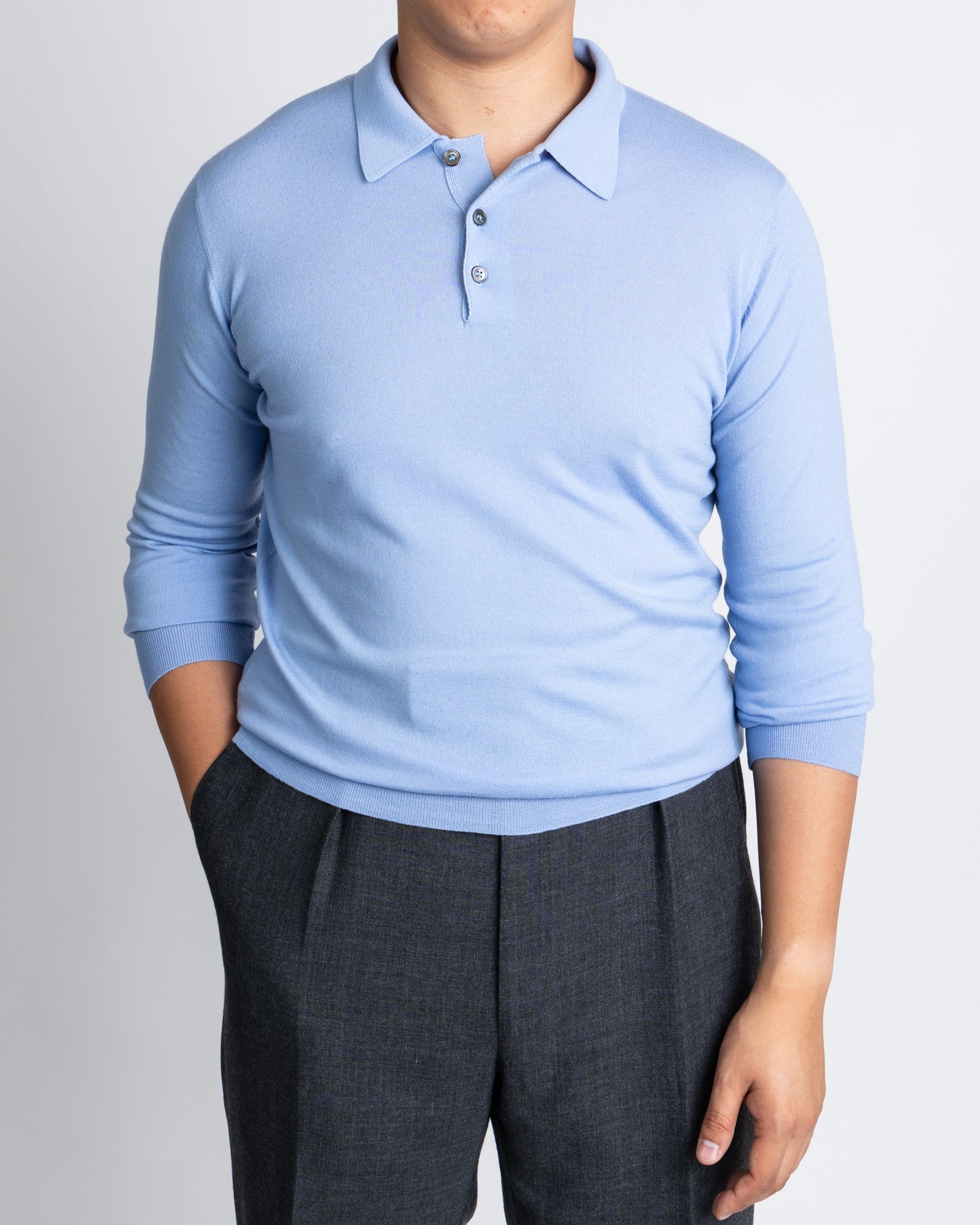 William Lockie x Julian's Loro Piana Merino Long Sleeve Polo - Hyacinth
