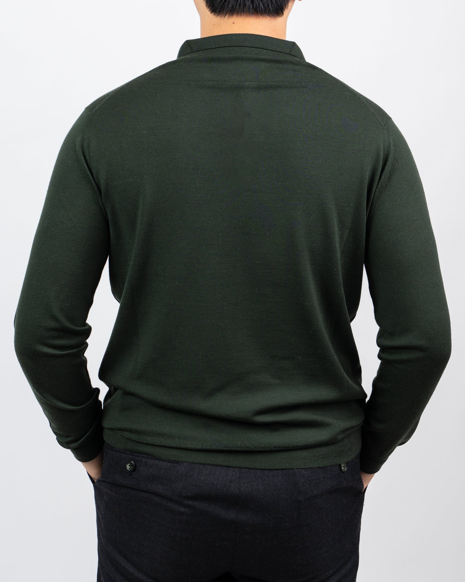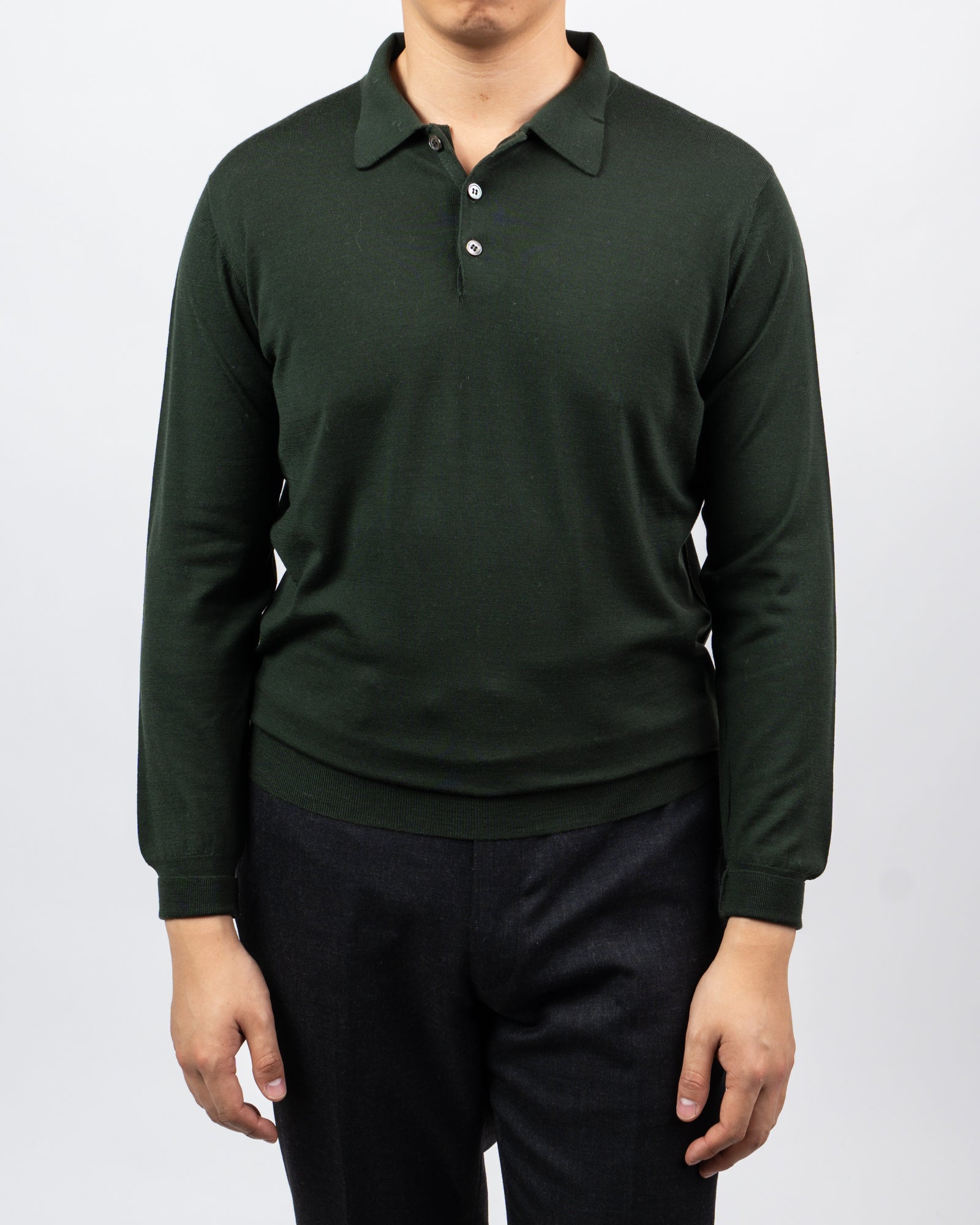 William Lockie x Julian's Loro Piana Merino Long Sleeve Polo - Moss