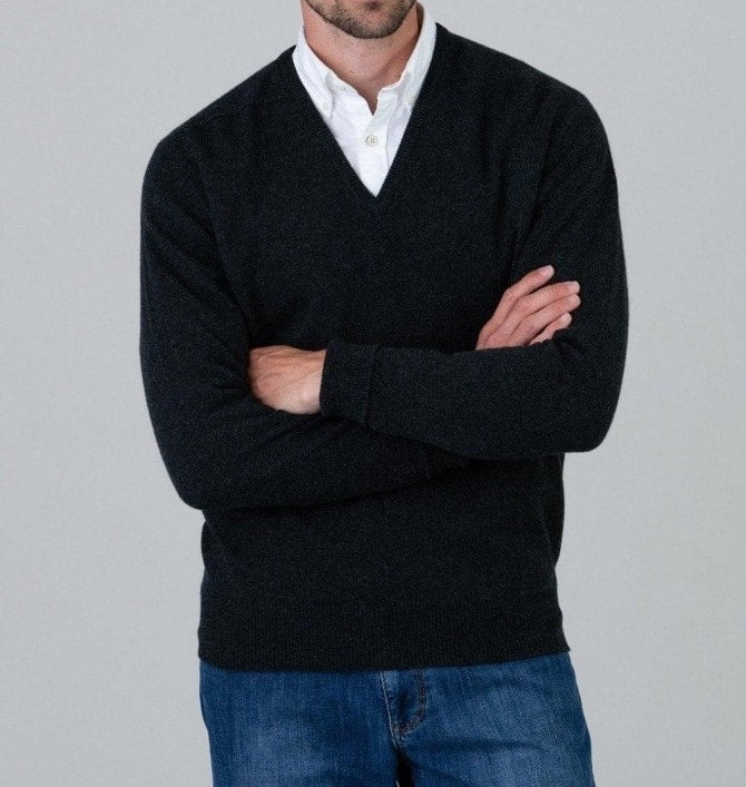 William Lockie V-Neck Charcoal 2-Ply Cashmere Sweater