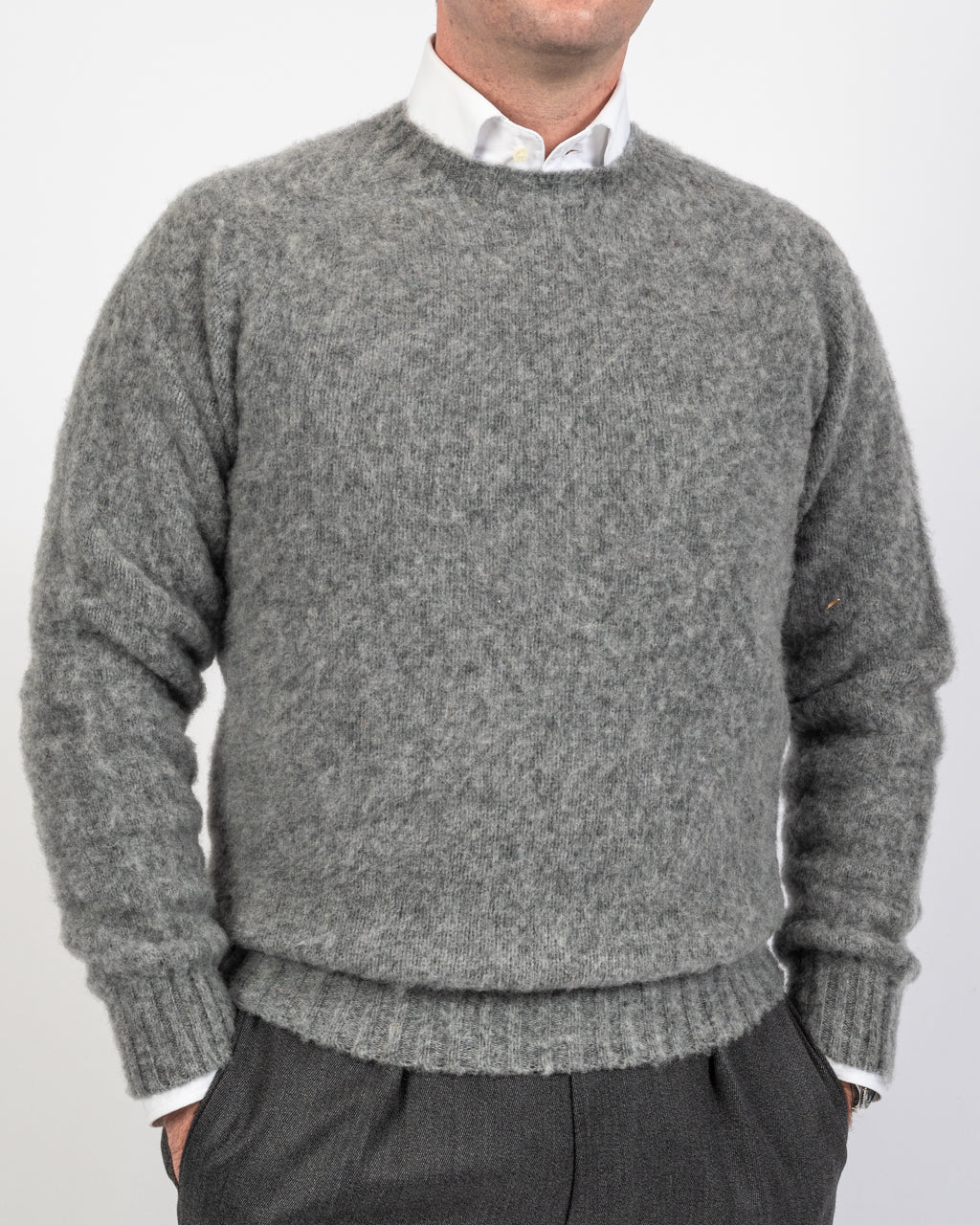 Knitted in Scotland from pure Scottish Shetland, each sweater is individually hand brushed or hand cabled to achieve an incredible fleece-like ability to warm according to need! The Monet-like melange of colours in each rich melange reflects Nature’s finest moments.