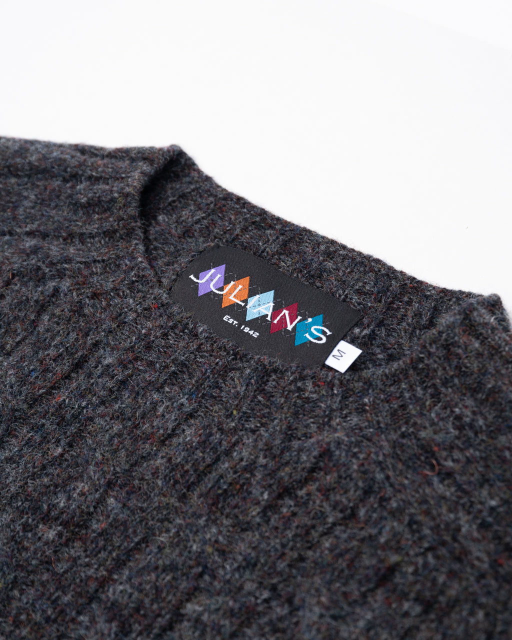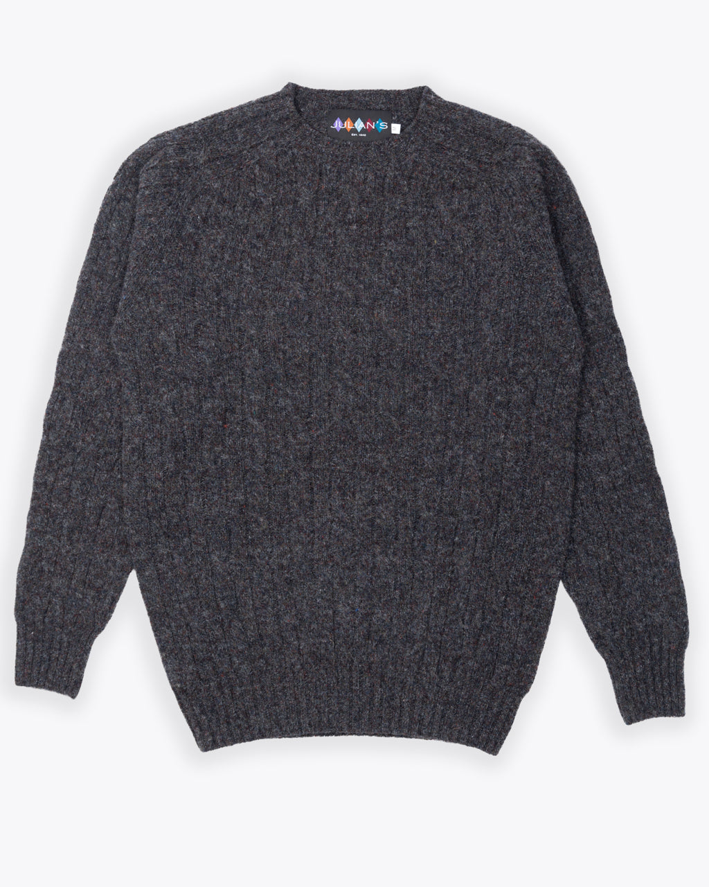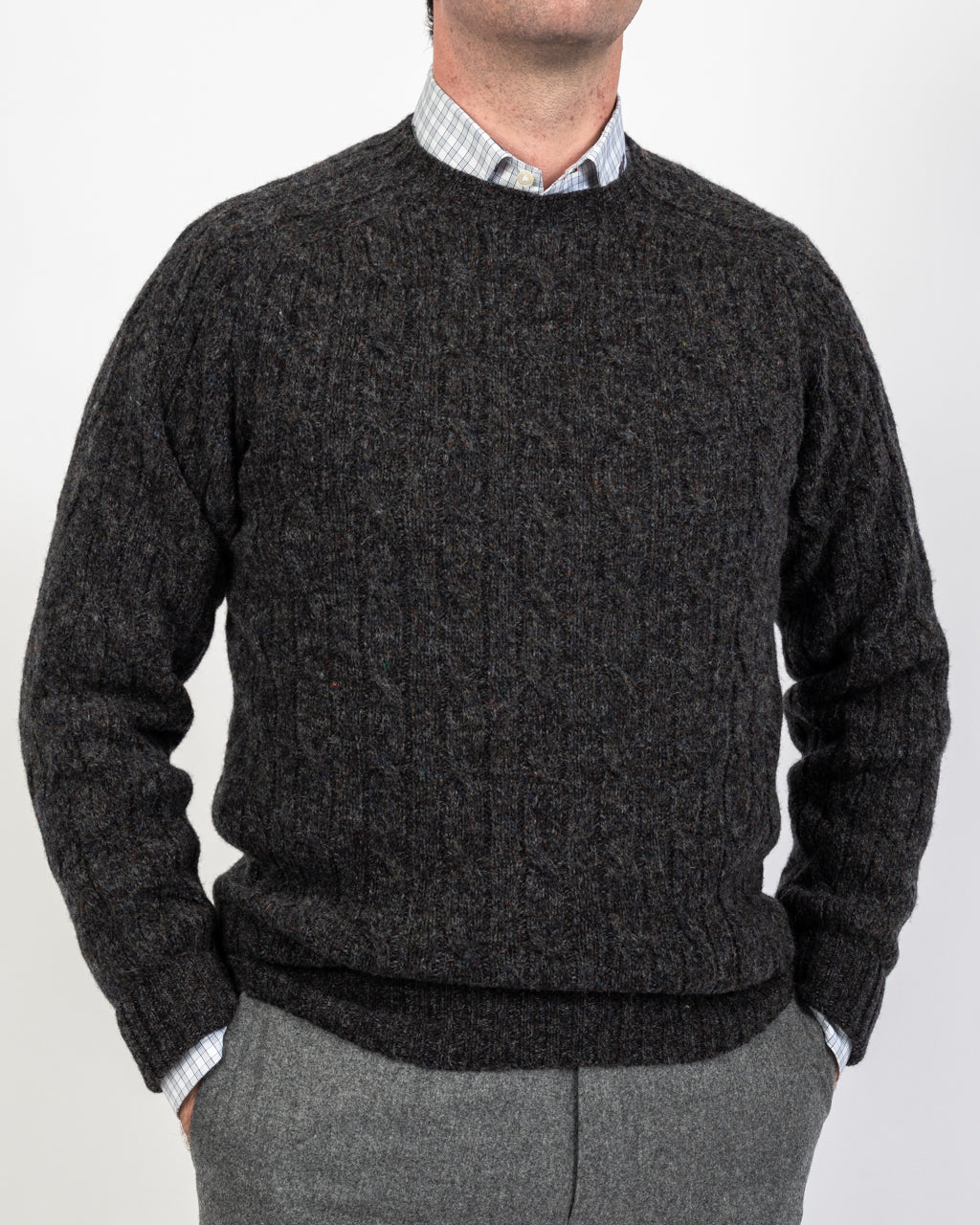 Smoulder Charcoal Crew Neck Cable Shetland Sweater