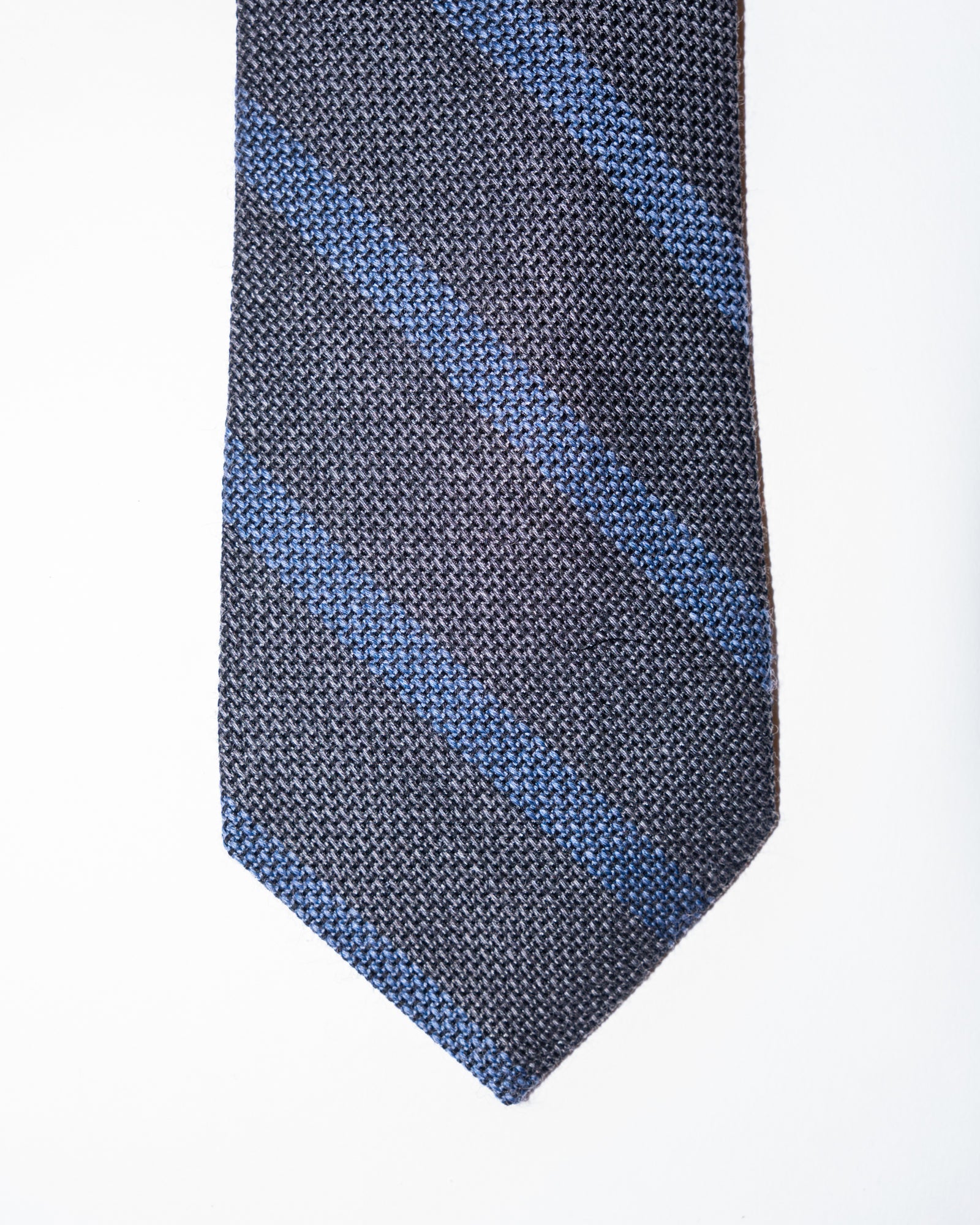 Grey / Blue Grenadine Striped Necktie (079-6)