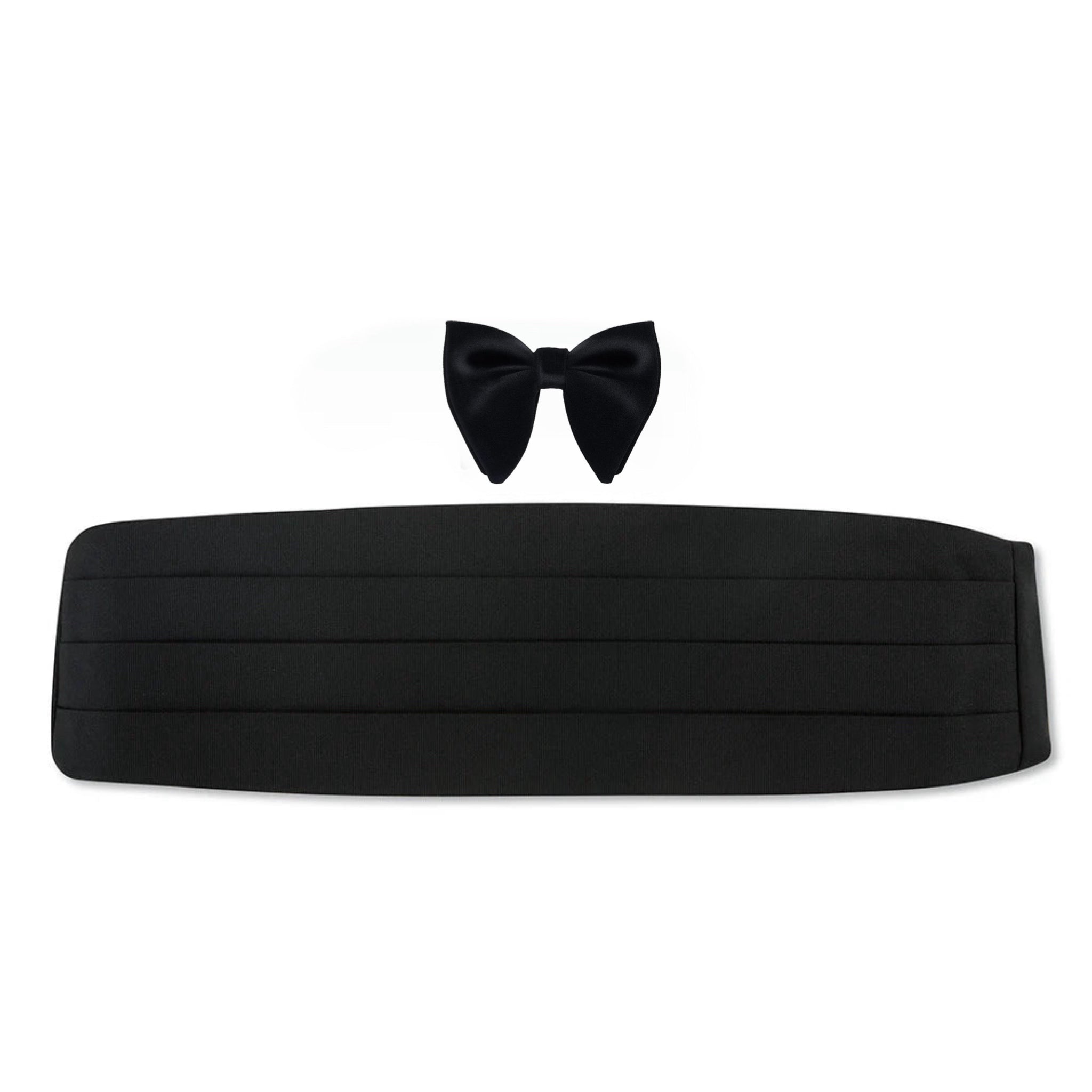 Formal Black Faille Swiss Silk Cummerbund & Parker Bowtie Set