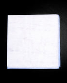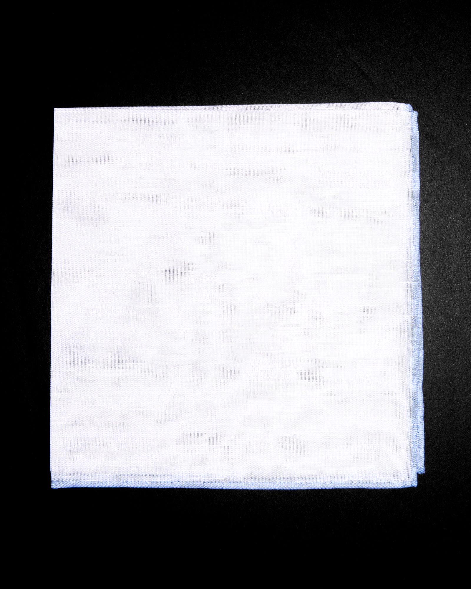 White plain pocket handkerchief with sky woven edge. Simonnot Godard luxury, fineness, soft cotton and linen batiste.