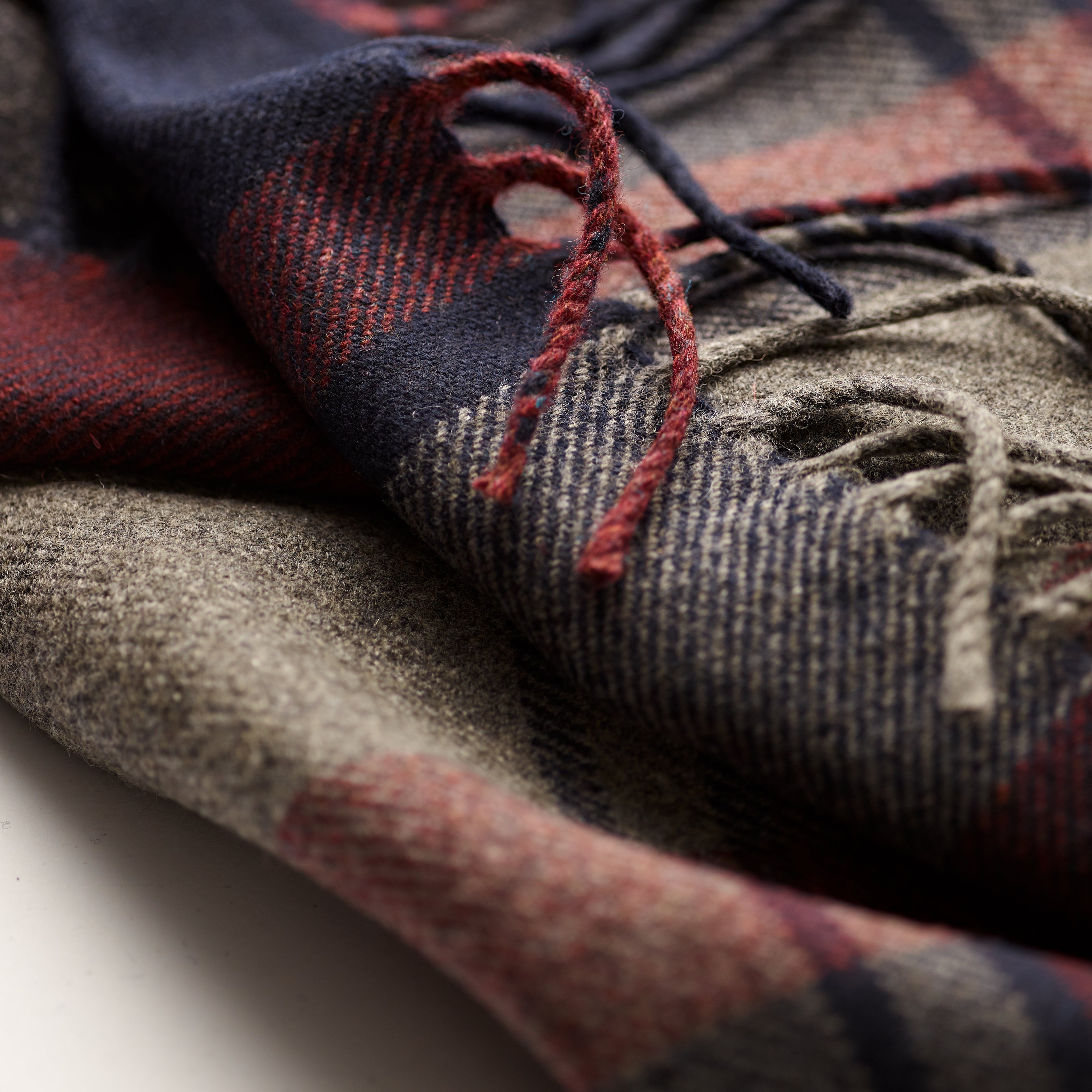 Fox Brothers Merino/Cashmere Navy & Wine Plaid Scarf