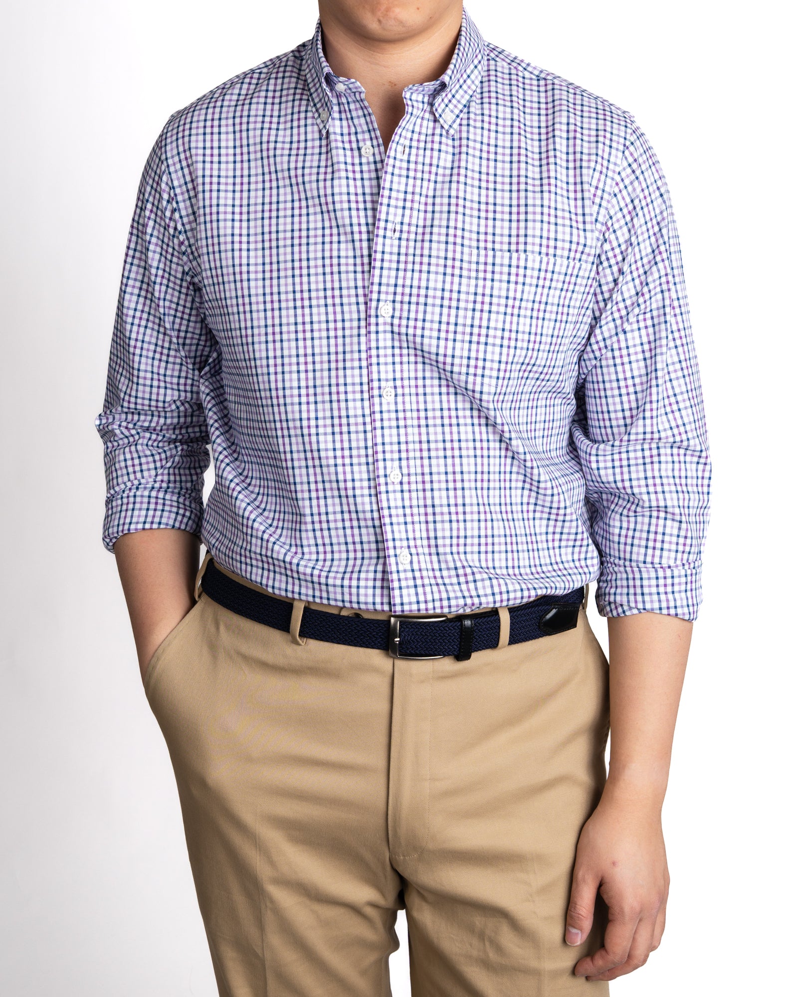 AP Fleetwood Purple & Navy Check Classic Fit Cotton Sport Shirt