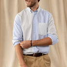 DH Stripe Patchwork Cotton Oxford Sport Shirt