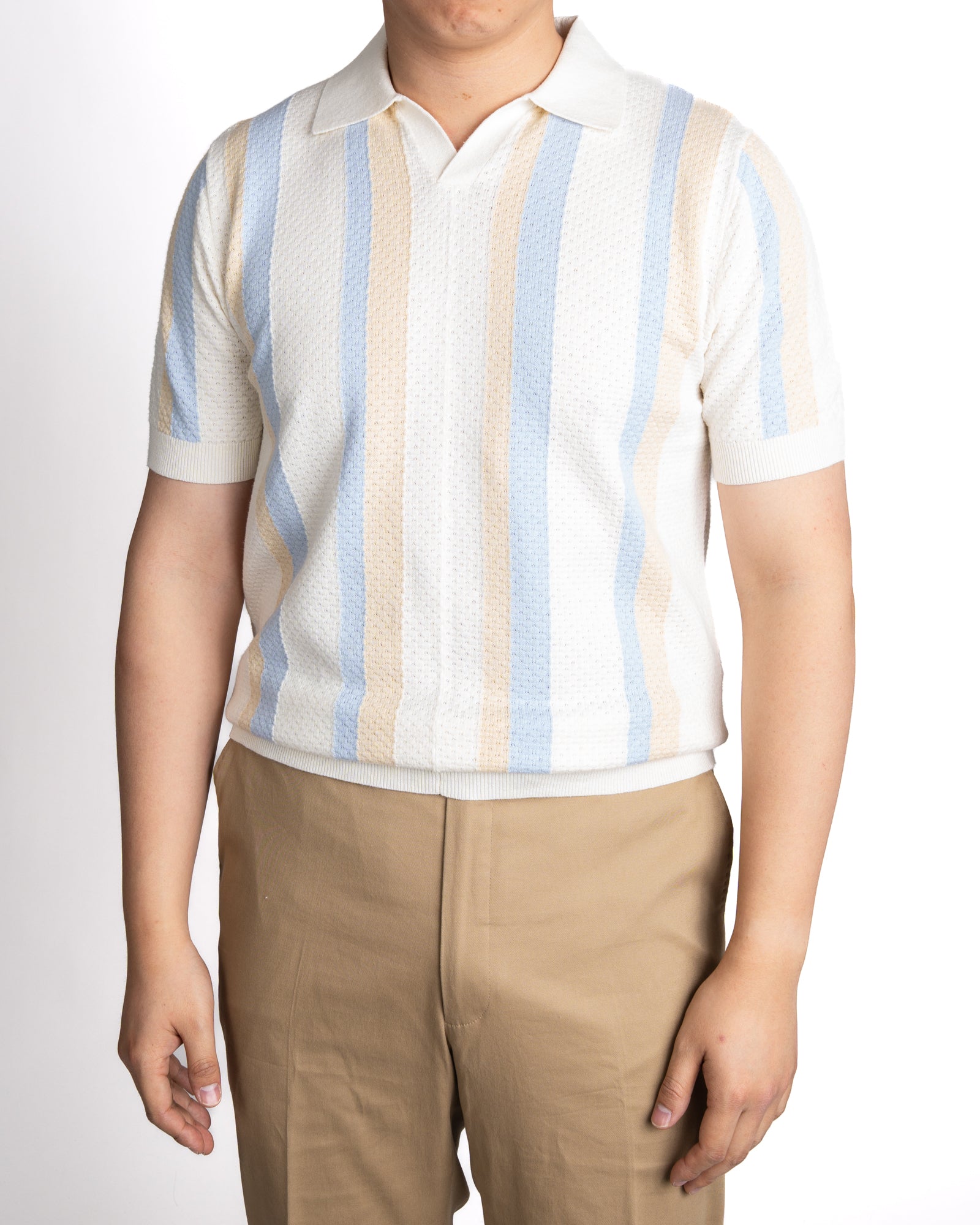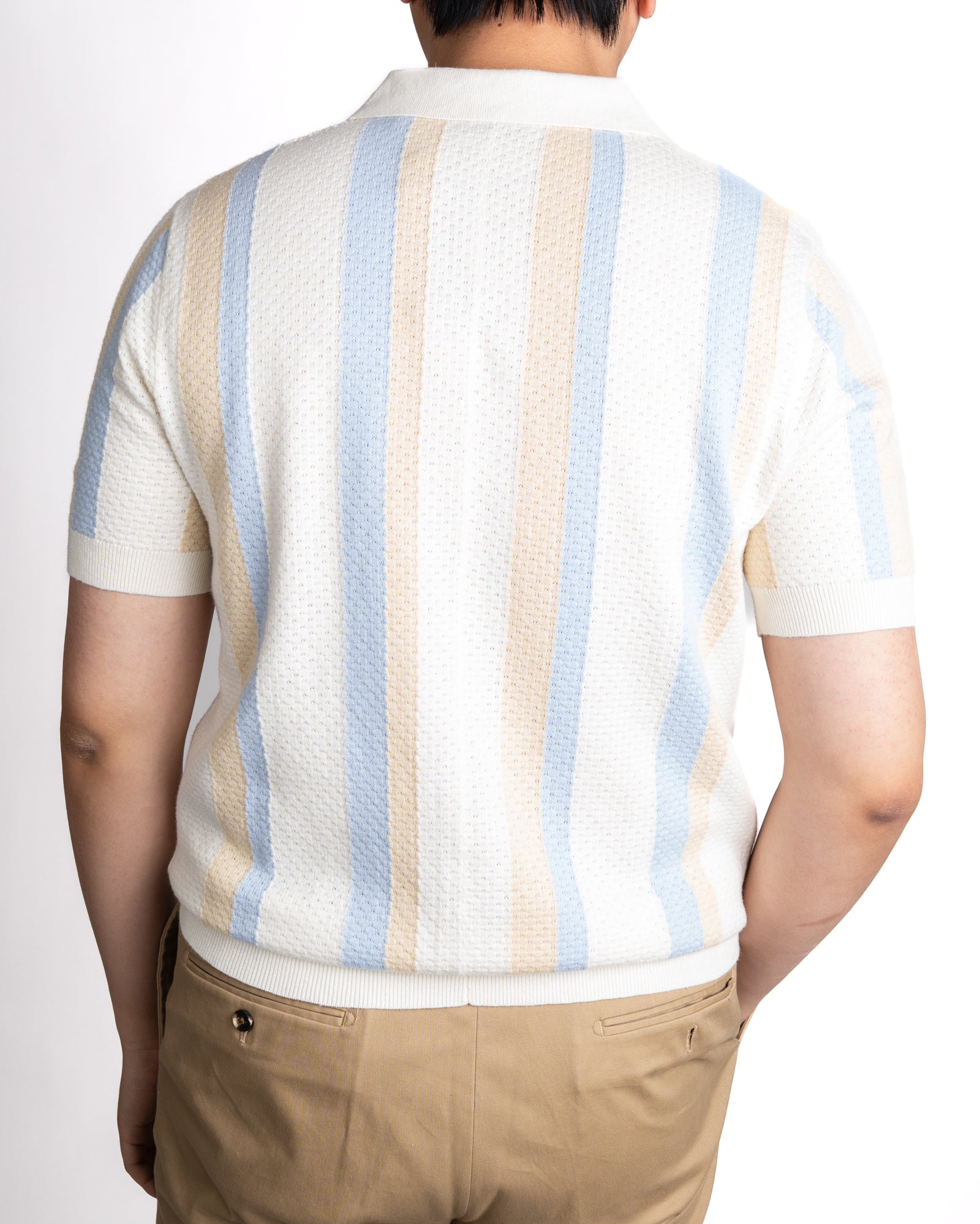Hemp & Cotton Ecru Striped Textured Polo