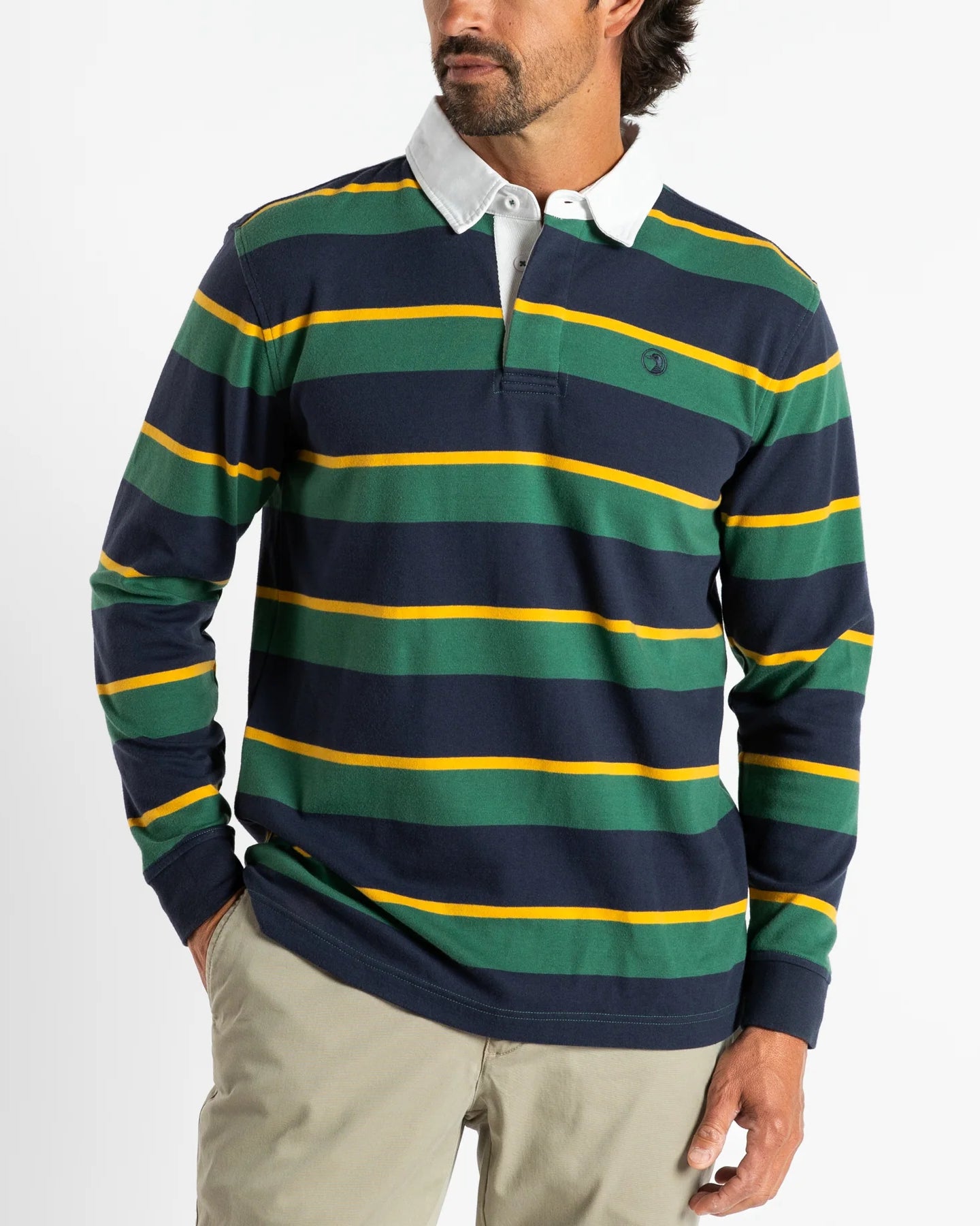 Duckead Legacy Green, Gold & Navy Stripe Rugby Shirt