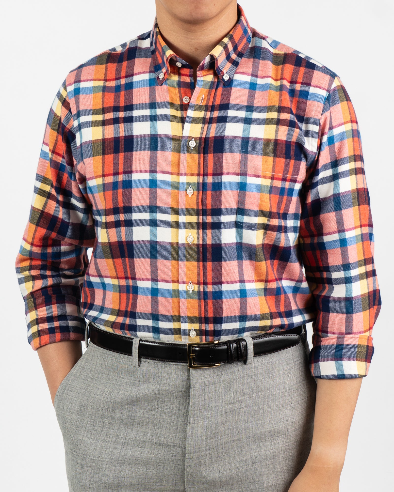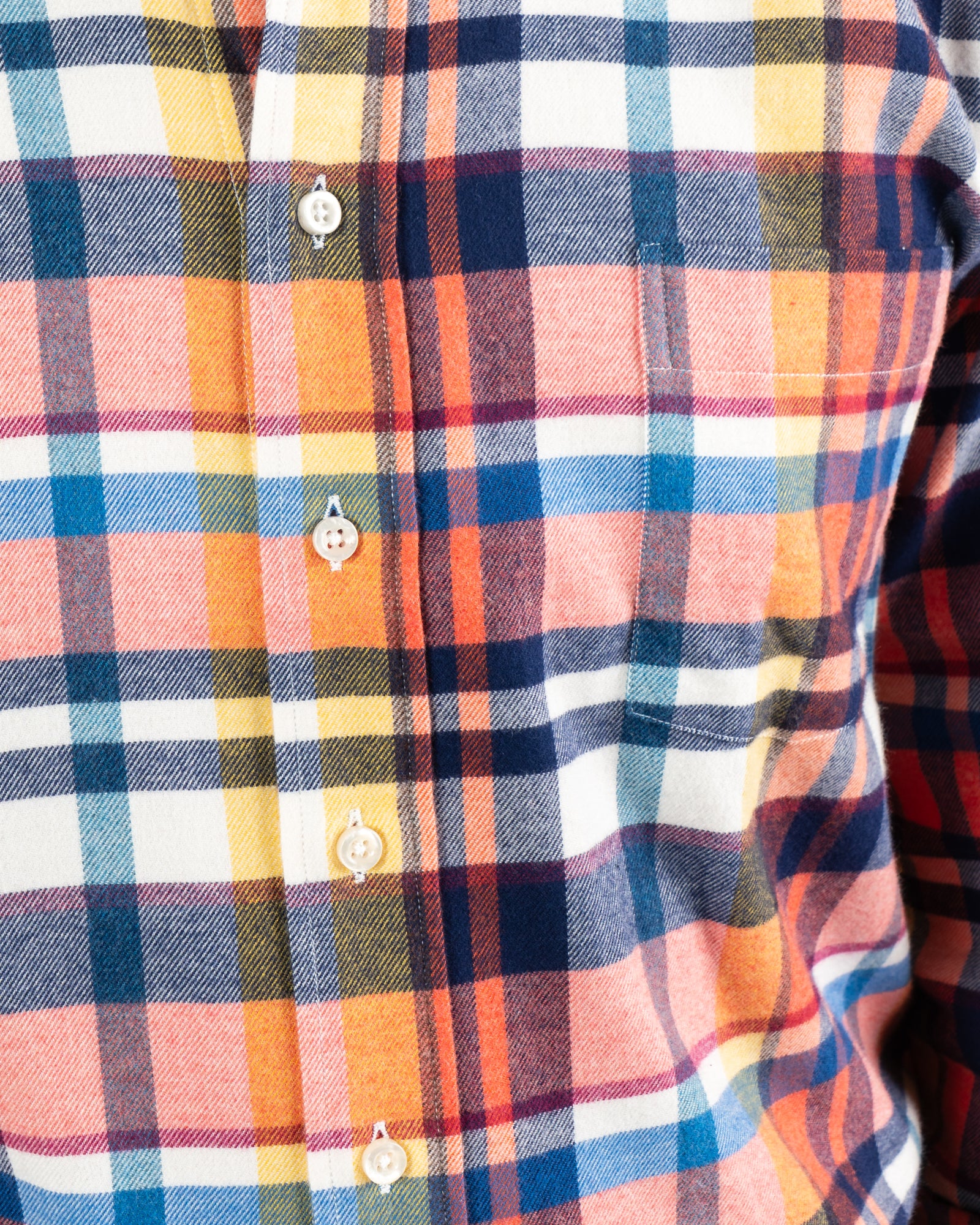 Mirfield Tangerine Plaid Classic Fit Brushed Cotton Flannel Shirt