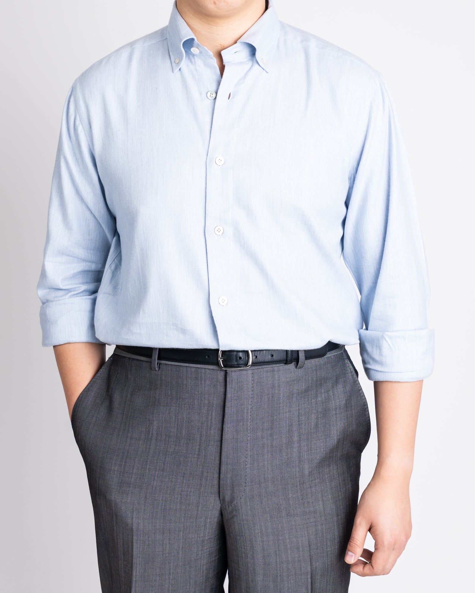 Sannino Ice Blue Herringbone Kiton Shirt