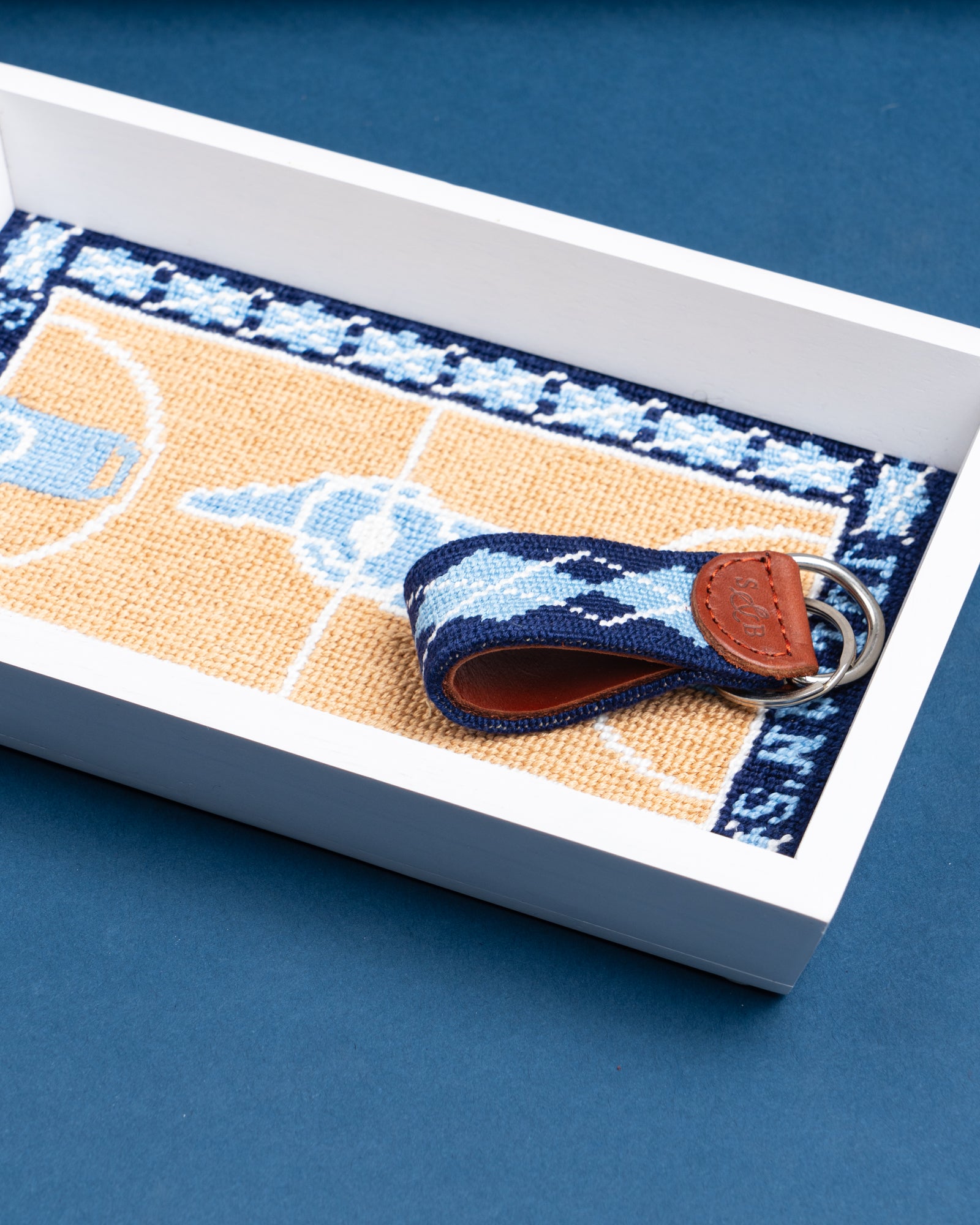 Our custom designed argyle needlepoint key fob give your keys a colorful personality and are just the right size to fit in your pocket or purse.