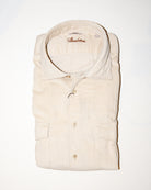 This Corduroy Work shirt is made of twofold cotton and is detailed with mother of pearl buttons, single cuffs and a Cutaway soft collar.