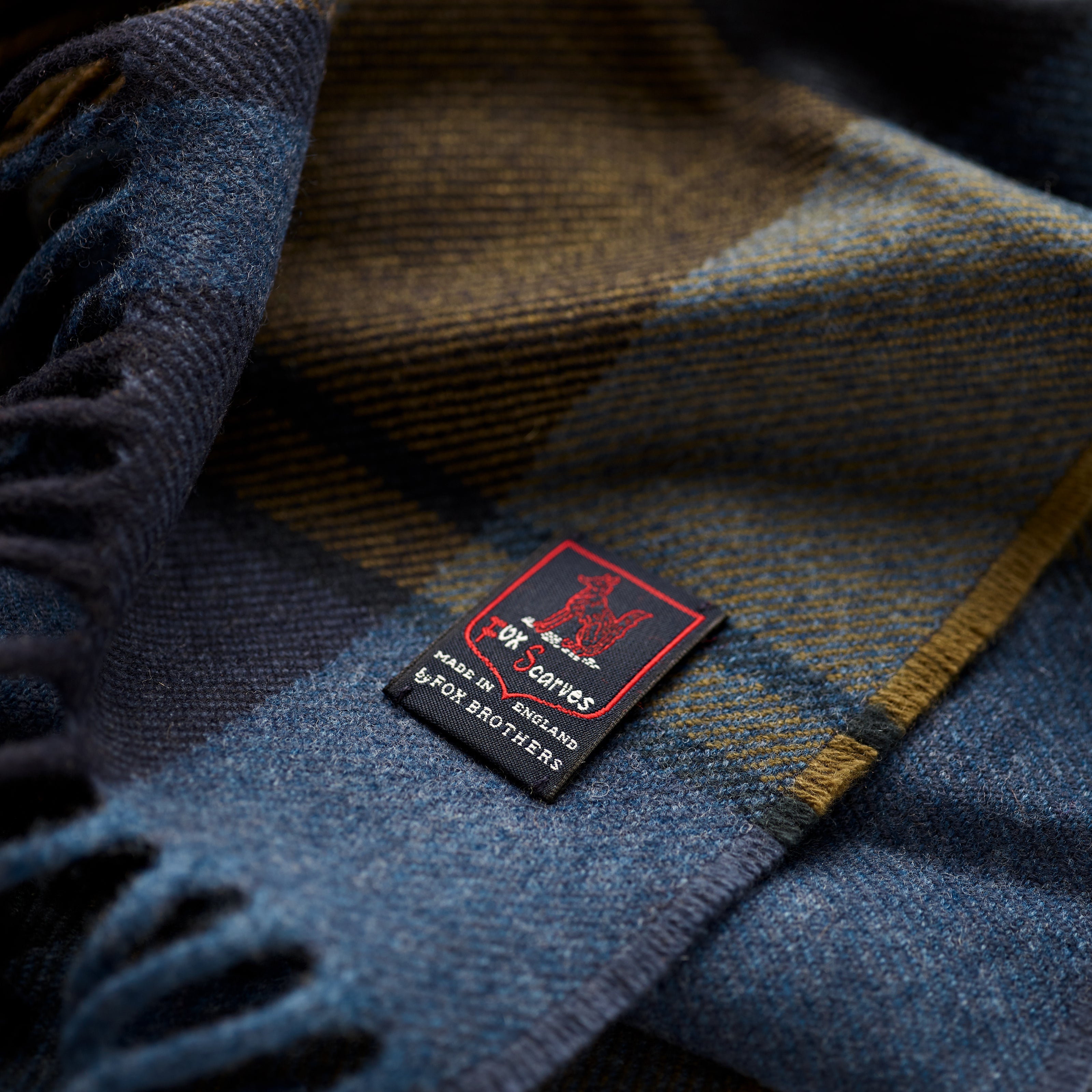 Fox Brothers Merino/Cashmere Navy & Olive Plaid Scarf