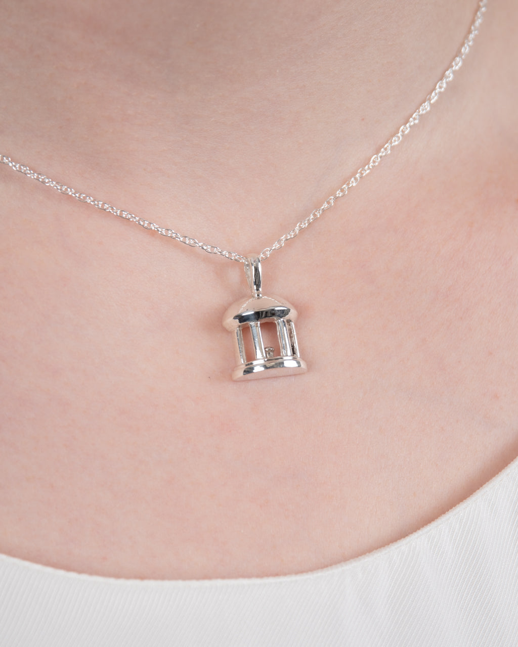 The Old Well Necklace is the perfect piece to carry the Tar Heel spirit with you everywhere you go. Its small size allows for a touch of elegance to be added to every look. Handcrafted right here in Chapel Hill, NC.  The necklace is born into the culture and is formidable for anyone that keeps the University of North Carolina close to their heart.