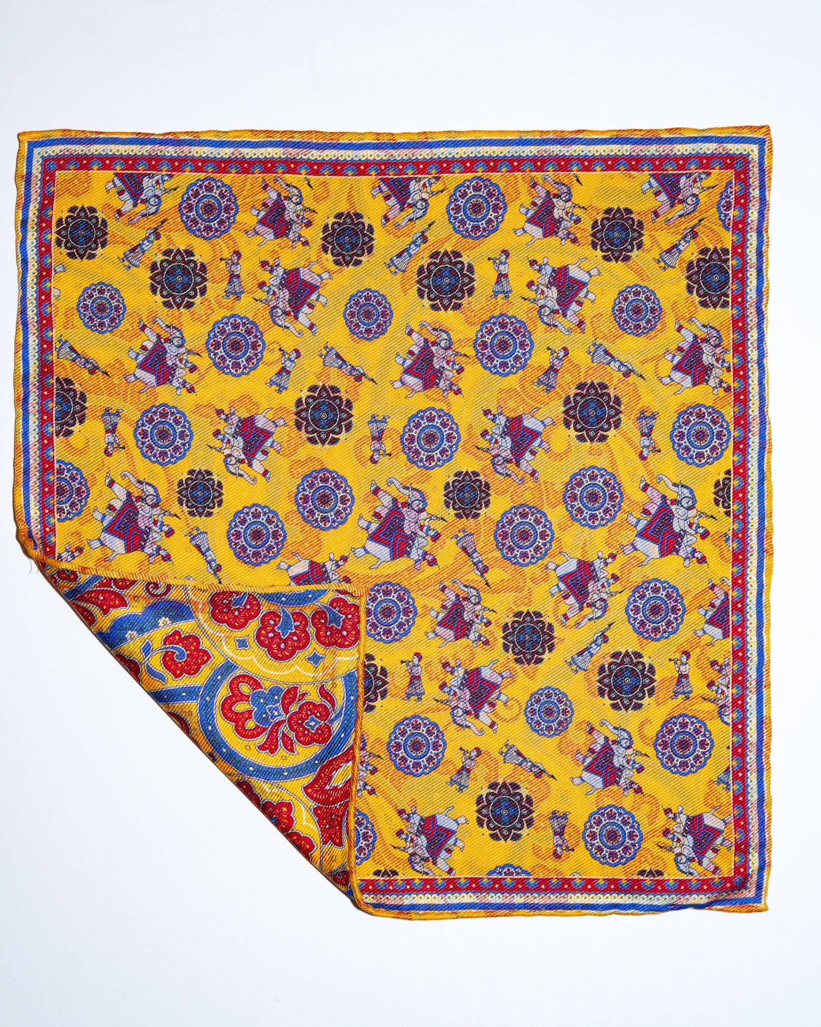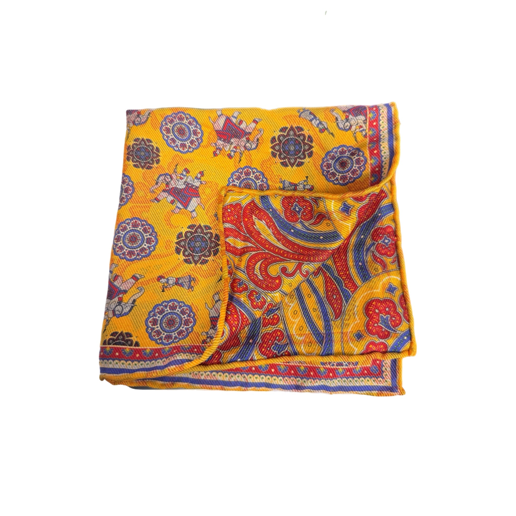 Yellow Ground Elephants Printed Silk Pocketsquare